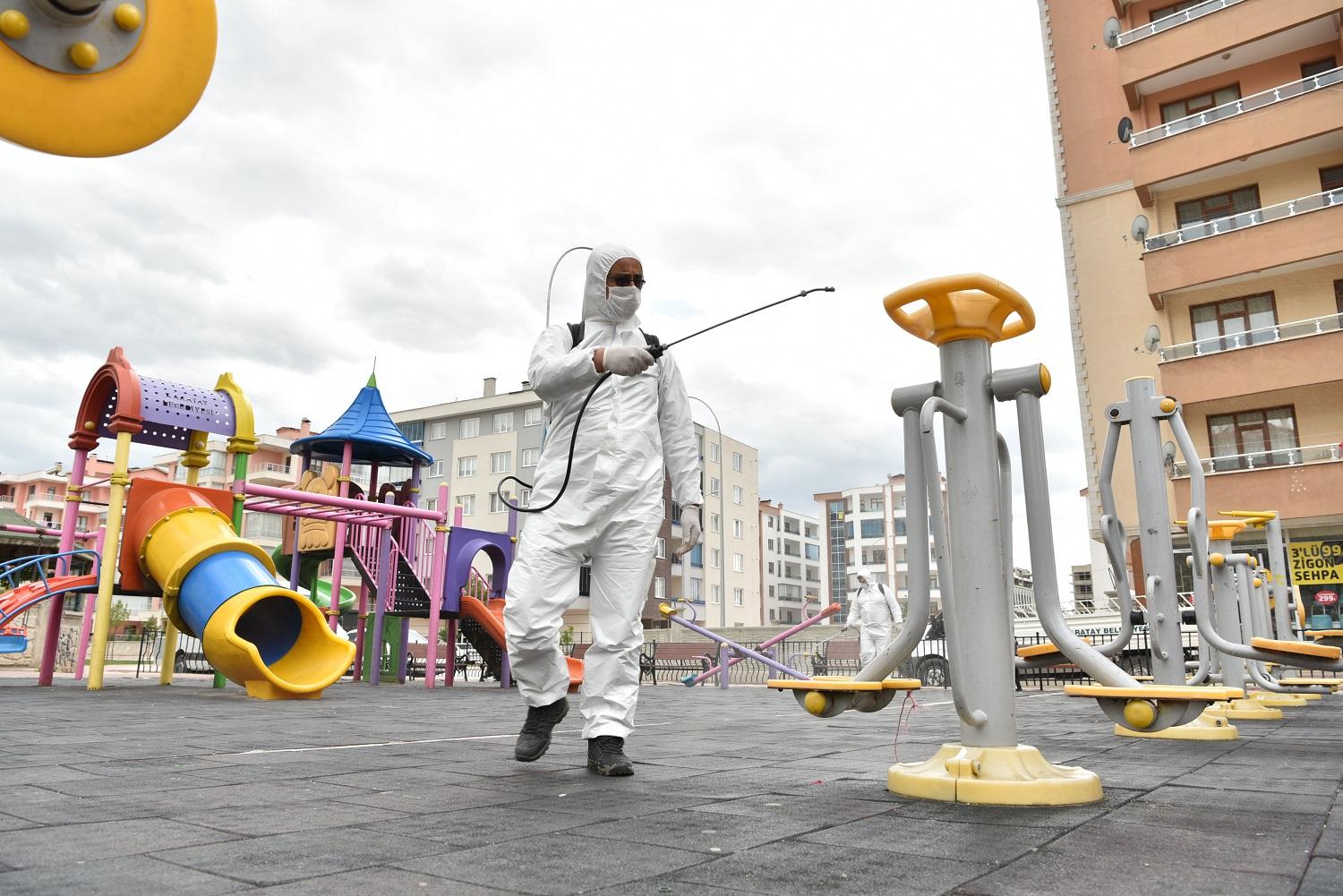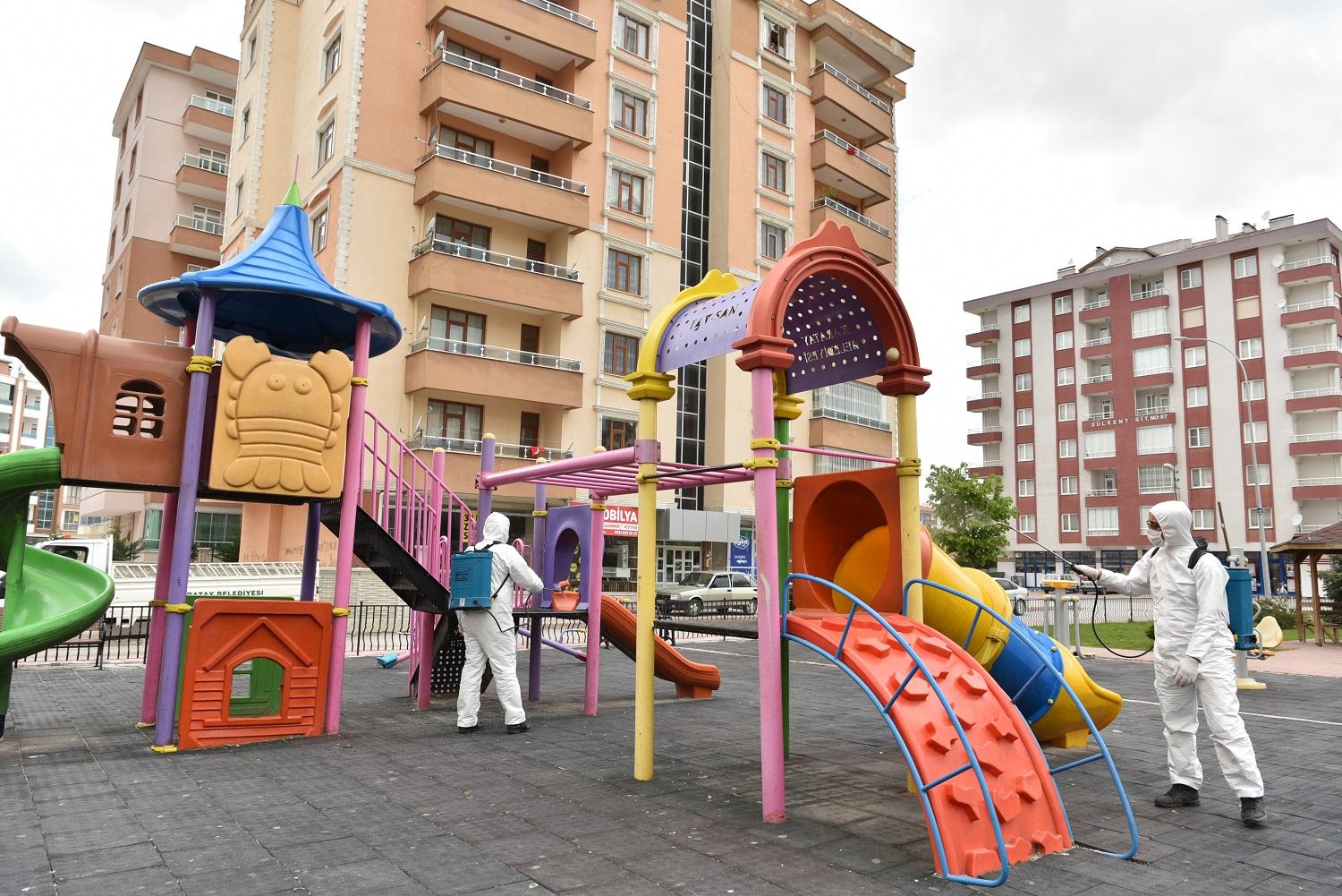 Parkların bakım çalışmalarından sonra dezenfeksiyon işlemi, çevre düzenleme çalışmaları yapılarak parklar salgın sonrasına hazır hale getiriliyor.