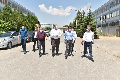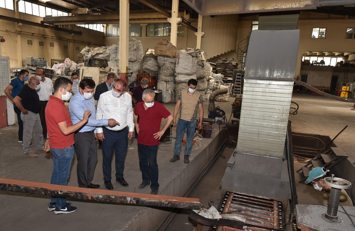 Başkan Hasan Kılca ve Mehmet Genç, kauçuk ve sünger üretimi yapan fabrikanın işletme sahibiyle bir süre görüşerek talihsiz olay hakkında bilgi aldı.
