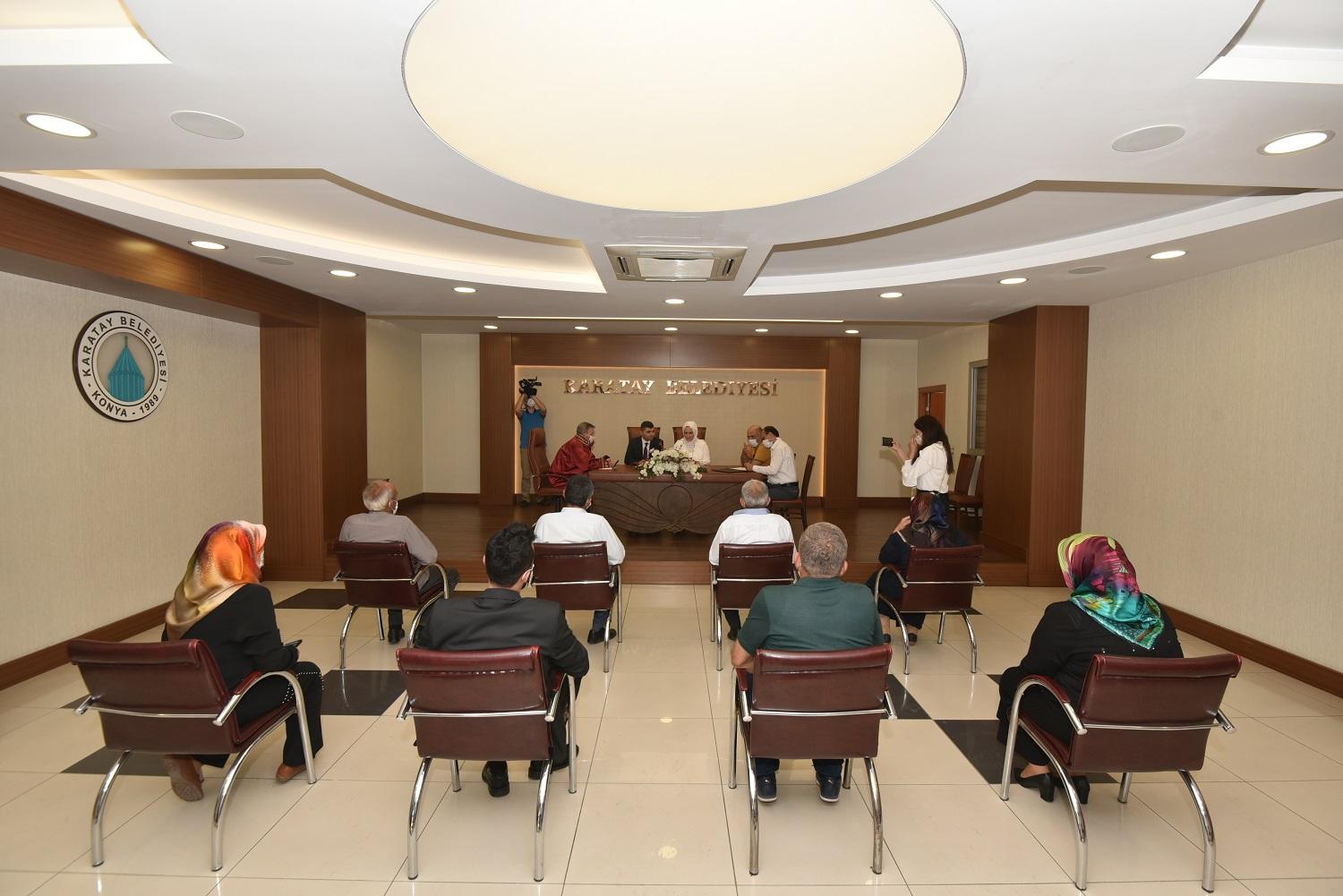 Koronavirüs salgını nedeniyle azalan nikah talepleri ile sosyal mesafe ve hijyen kurallarını dikkate alan Karatay Belediyesi nikah işlemlerinde düzenleme yaptı. Bu kapsamda nikah Salonu'nun kapasitesi 12'ye düşürüldü.