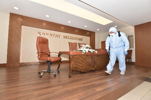 Karatay Belediyesi olarak, halk sağlığı ile ilgili her türlü çalışmayı yaptıklarını söyleyen Karatay Belediye Başkanı Hasan Kılca, Konya'daki vaka artışlarını göz önünde bulundurup çalışmalarını buna göre daha da titizlikte yaptıklarını belirterek dezenfekte çalışmalarının ilçe genelinde periyodik olarak sürdürüldüğünü belirtti.