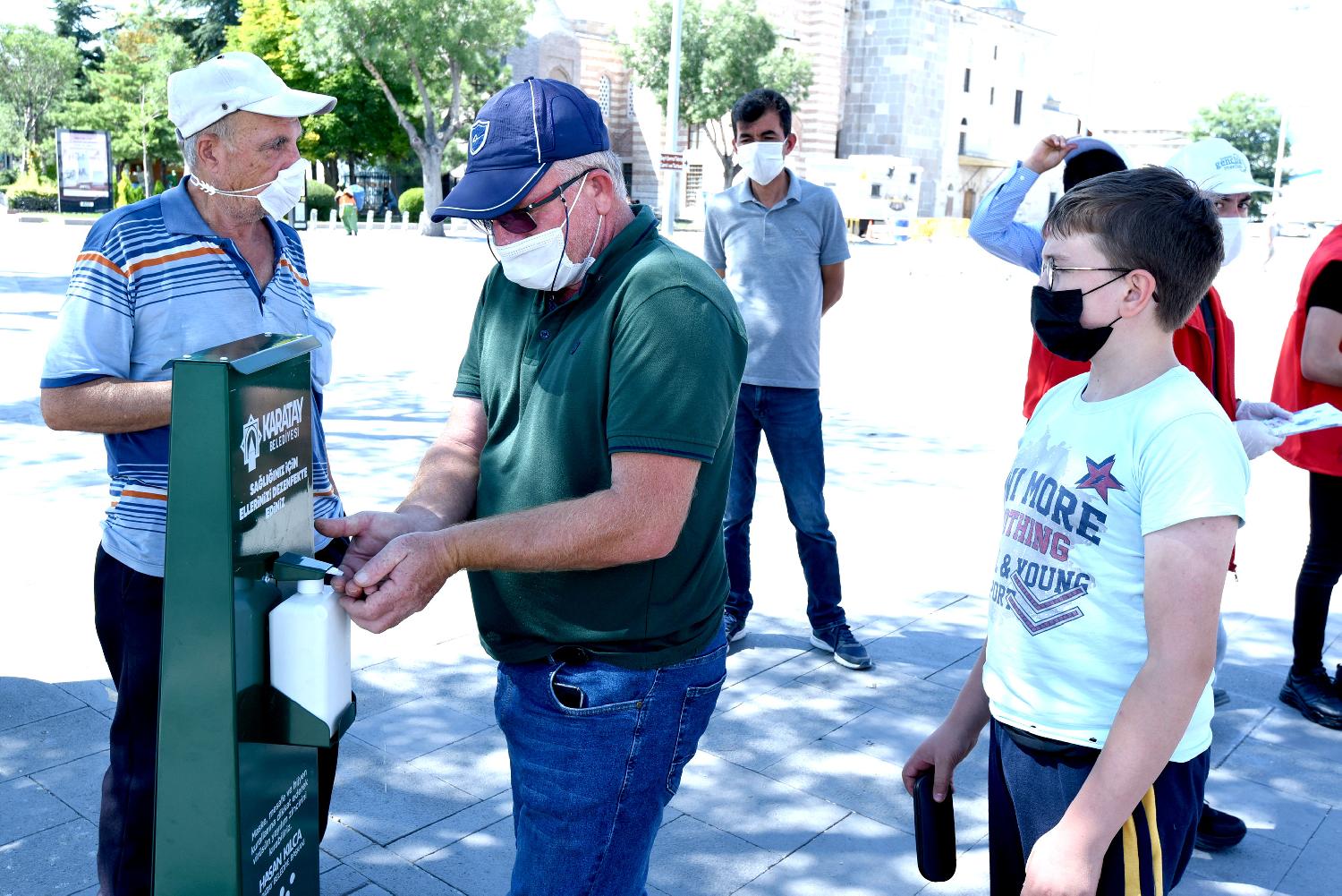Dezenfektan aparatları sayesinde vatandaşların ellerini dezenfekte de edebildiği standlar, vatandaşlar tarafından büyük takdir topluyor.