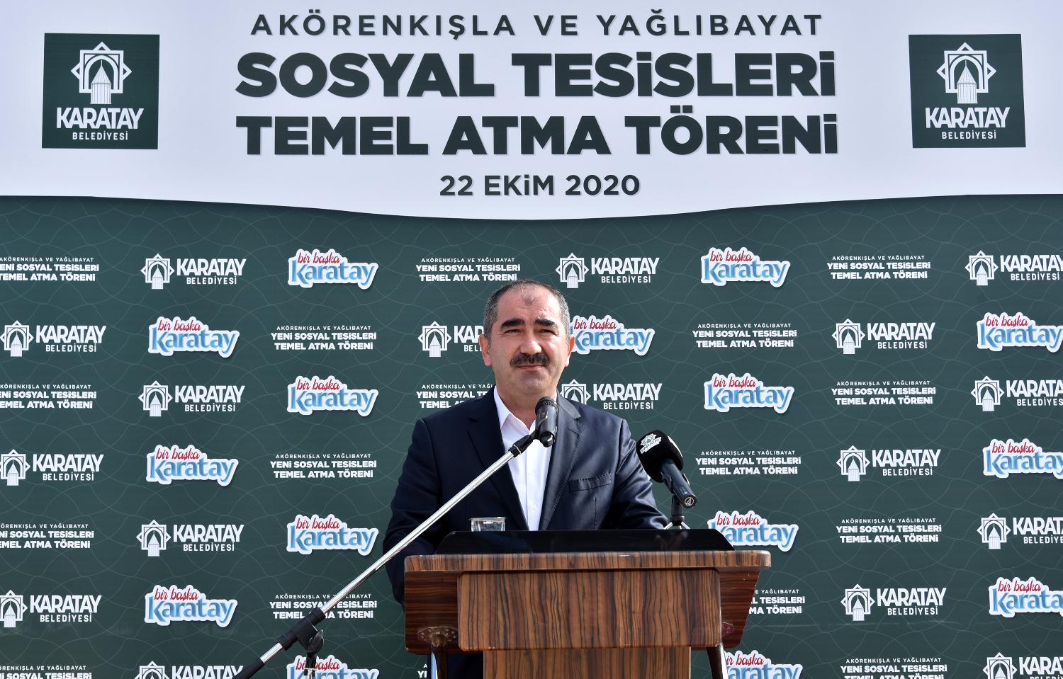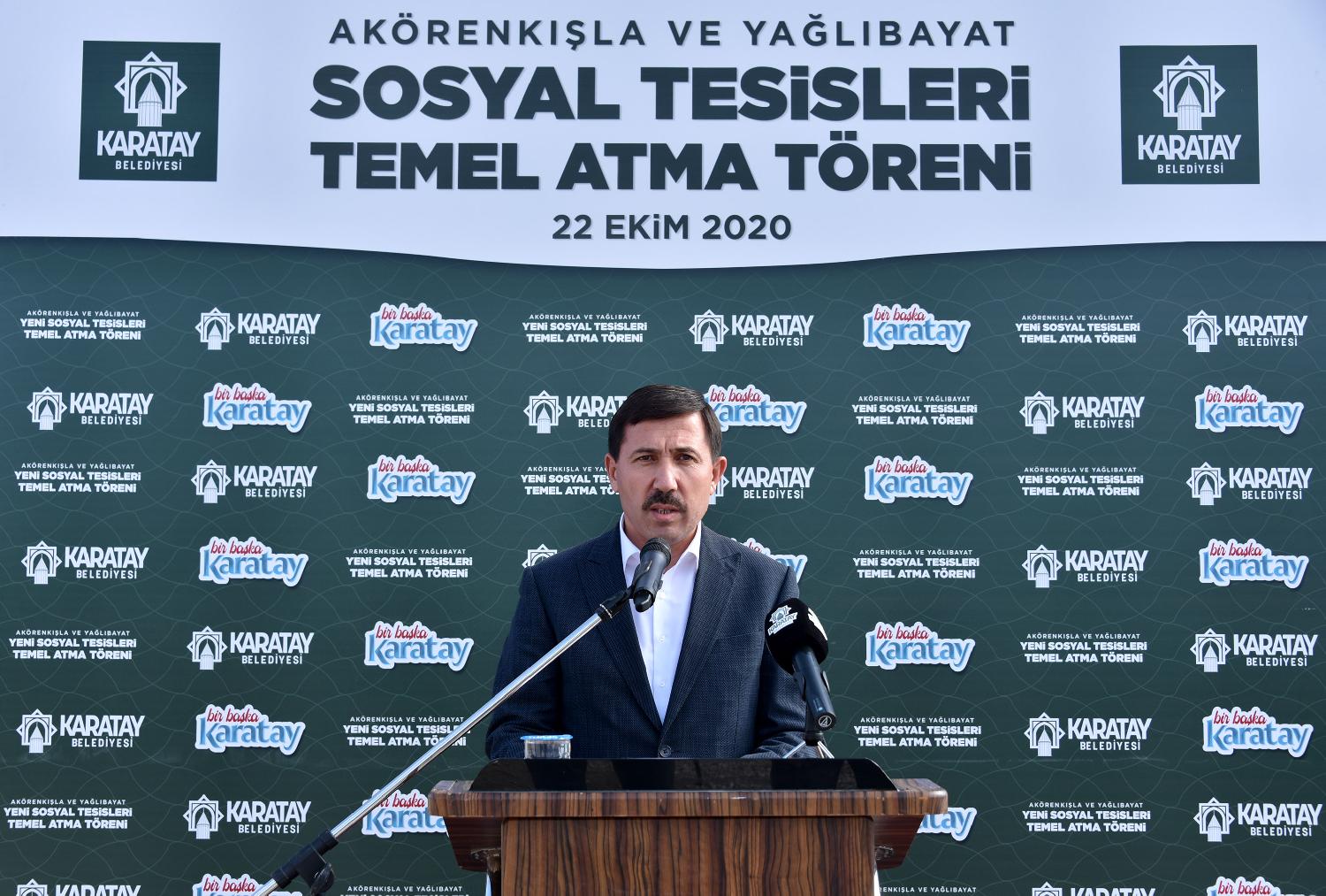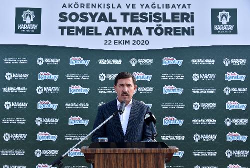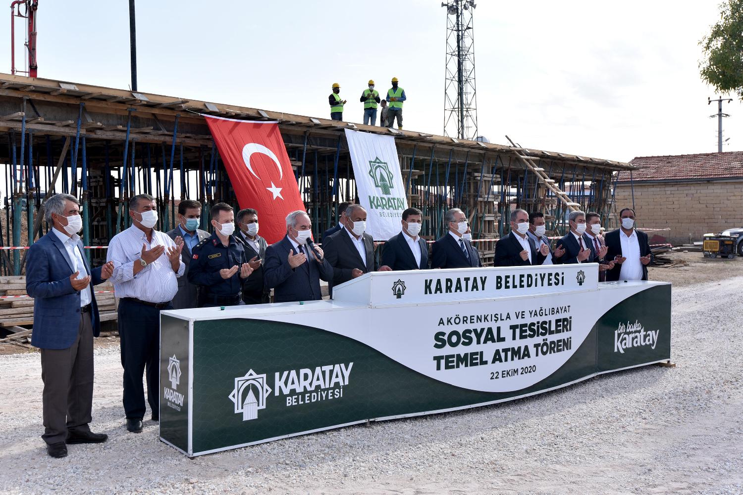 Karatay Belediyesi ilçenin yaşam standardını yükselten yatırımlarına yenilerini ekliyor. Bu kapsamda Yağlıbayat ve Akörenkışla Mahallelerine kazandırılacak olan iki sosyal tesisin temeli düzenlenen törenle atıldı.