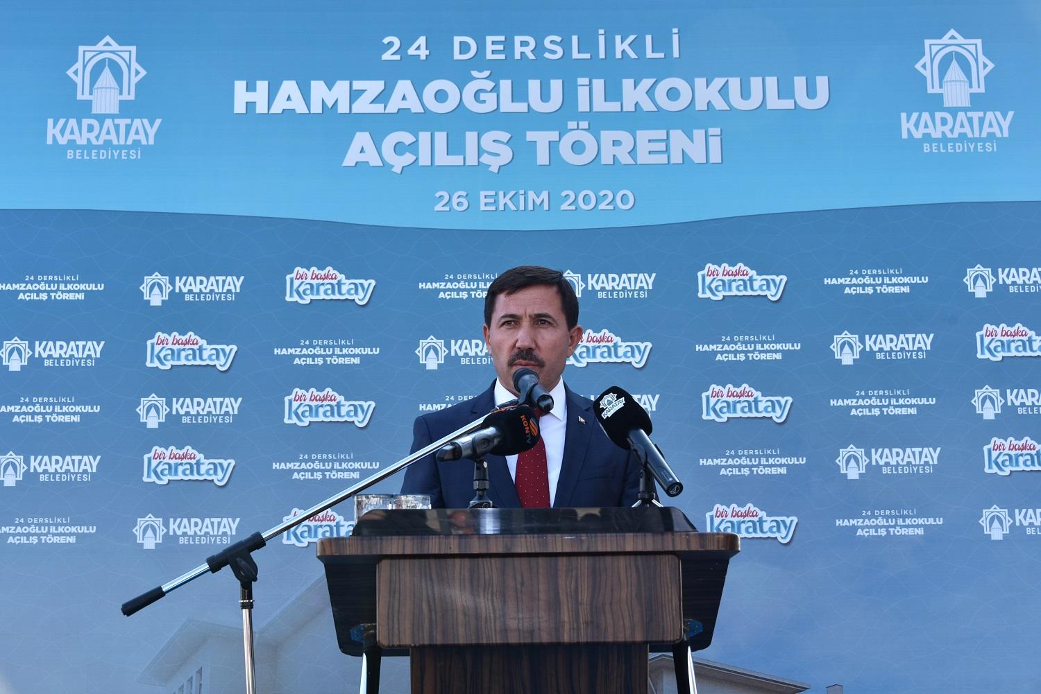 Bu kapsamda Karatay Belediyesi tarafından Hamzaoğlu Mahallesi’nde yapımı tamamlanan 24 derslikli ilkokulun, açılışı düzenlenen törenle gerçekleştirildi.