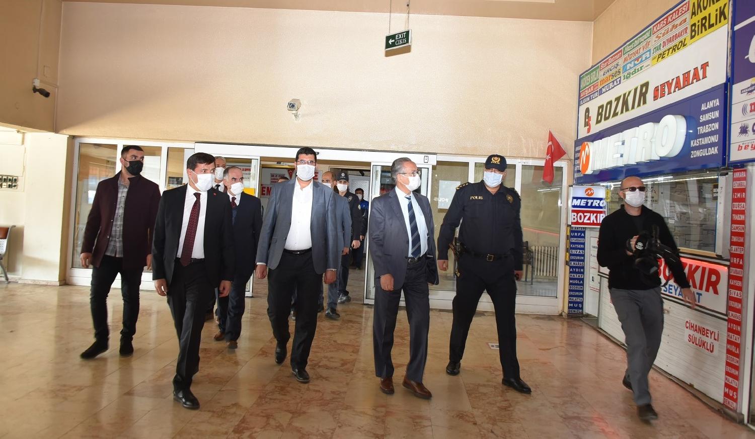 Karatay Belediye Başkanı Hasan Kılca, Karatay Kaymakamı Abdullah Selim Parlar ve Karatay İlçe Emniyet Müdürü Hikmet Demirci ile birlikte Karatay Otobüs Terminali ve Pazar yerlerinde maske, sosyal mesafe ve hijyen konusunda vatandaş ile esnafa yönelik denetim yaptı.