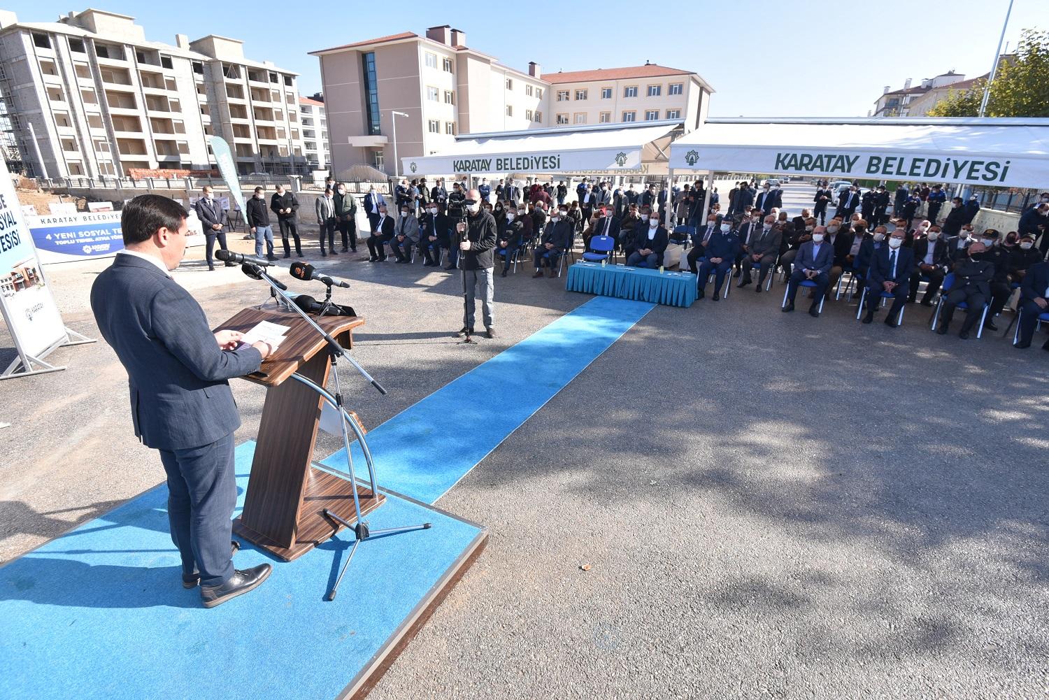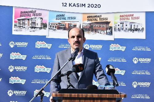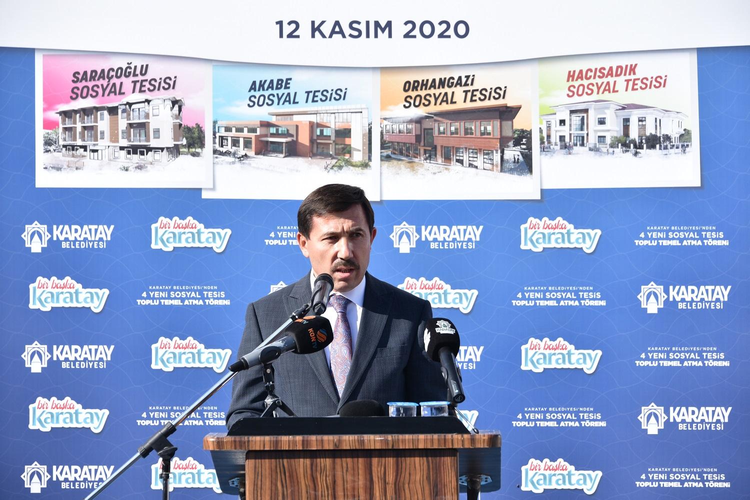 Protokol konuşmaların ardından Karatay Belediyesi tarafından Saraçoğlu, Orhangazi, Akabe ve Hacısadık mahallelerine kazandırılacak 4 sosyal tesis ile kurs merkezinin temelleri, dualarla atıldı.