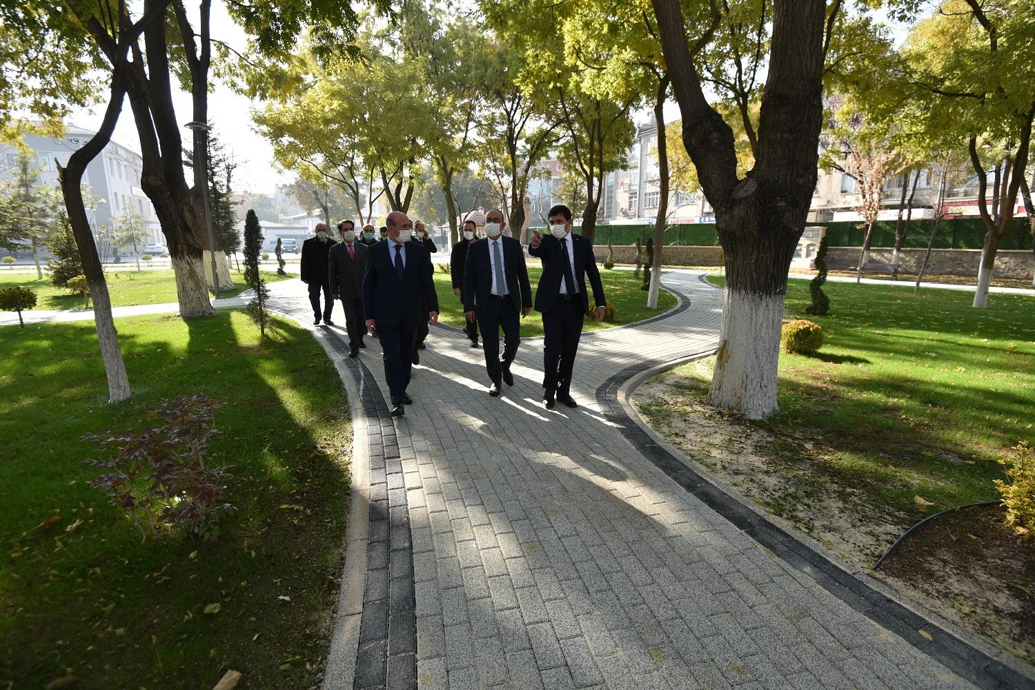 Karatay Belediye Başkanı Hasan Kılca da Selçuklu Belediye Başkanı Ahmet Pekyatırmacı ve Meram Belediye Başkanı Mustafa Kavuş ile birlikte Konya Anadolu İmam Hatip Lisesi bahçesinde tamamlanan bahçe ve çevre düzenlemesini inceledi.