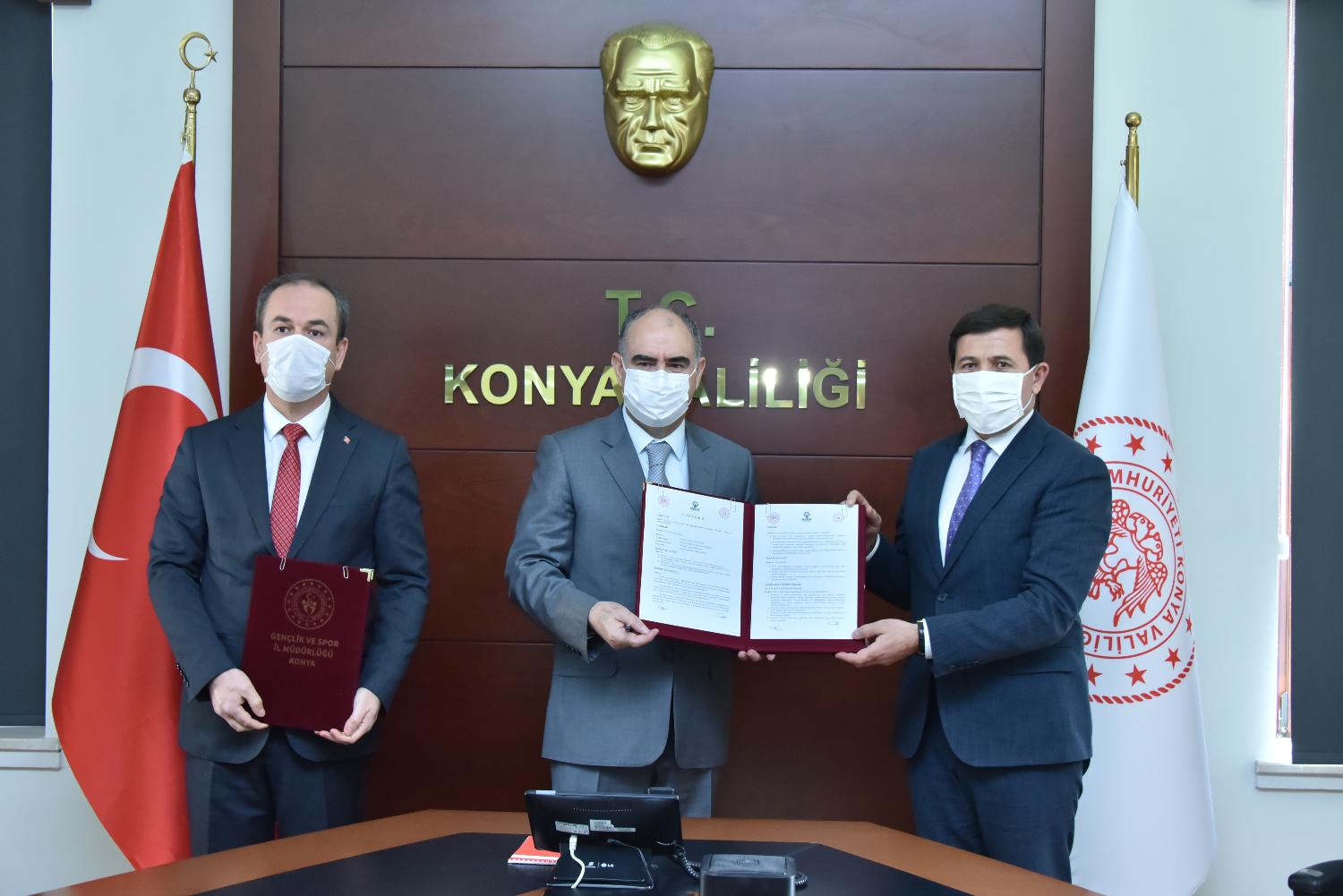 Konuşmaların ardından Karatay Belediye Başkanı Hasan Kılca ile Konya Gençlik ve Spor Müdürü Abdurrahman Şahin, Konya Valiliği koordinesinde hayata geçecek projelerin iş birliği protokolünü imzaladı.