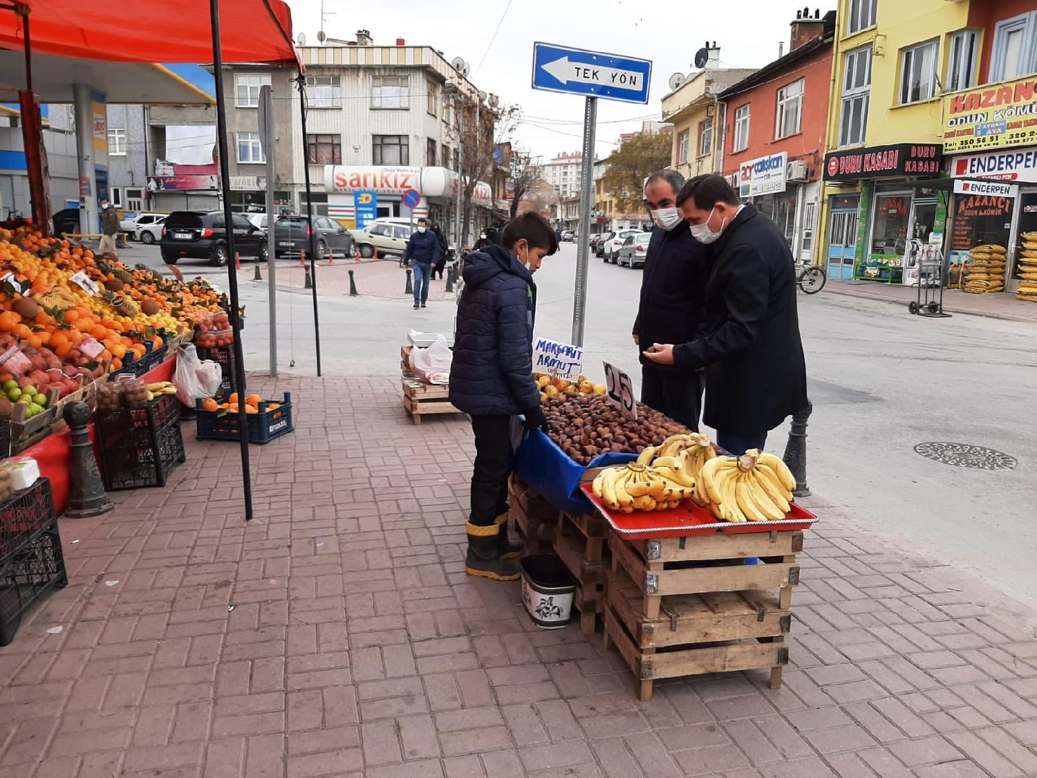 Adalet ve Kalkınma Partisi(AK Parti) Karatay İlçe Başkanı Mehmet Genç’in de eşlik ettiği ziyaretlerde Başkan Hasan Kılca, pandemi dolayısıyla esnafa maske, sosyal mesafe, hijyen kurallarına uyulması konusunda hassasiyet gösterilmesi çağrısında bulundu.