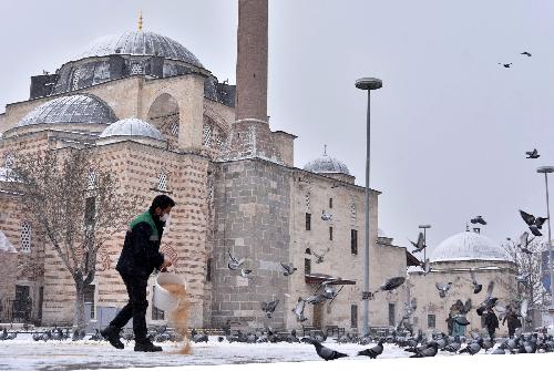 Havaların iyice soğumasının ardından Konya merkezde yılın ilk karı da yağdı. Bu havalarda sokakta yaşayan hayvanlar için yiyecek bulmak da biraz daha zorlaşıyor.