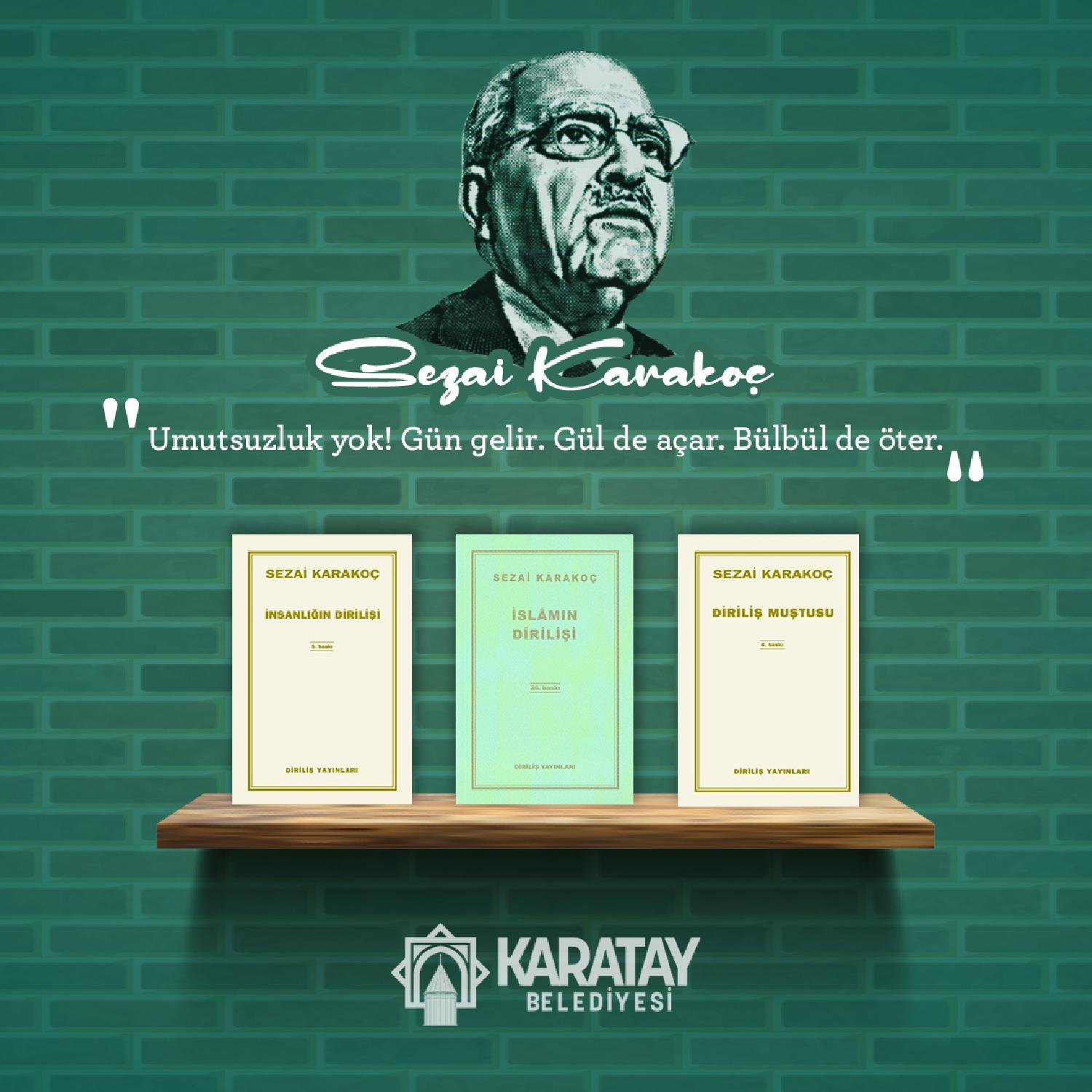 Karatay Belediye Başkanı Hasan Kılca sosyal medya hesabından bu kapsamda büyük Türk Şairi Sezai Karakoç’u 88. doğum yıl dönümünde hatırlatarak; şiir sevdalısı Karakoç’un 88. doğum yıl dönümü vesilesiyle 88 kişiye ünlü şairin ‘Diriliş Serisini’ hediye etti.