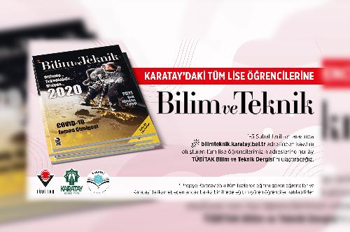 Öğrencilerin TÜBİTAK Bilim ve Teknik dergisini alabilmeleri için 1-5 Şubat tarihleri arasında bilimteknik.karatay.bel.tr adresinden kaydını oluşturması gerekiyor. Projeye Karatay’daki tüm liselerde eğitim gören öğrenciler ve Karatay’da ikamet eden ancak başka bir ilçede eğitim gören öğrenciler de katılabilecek.