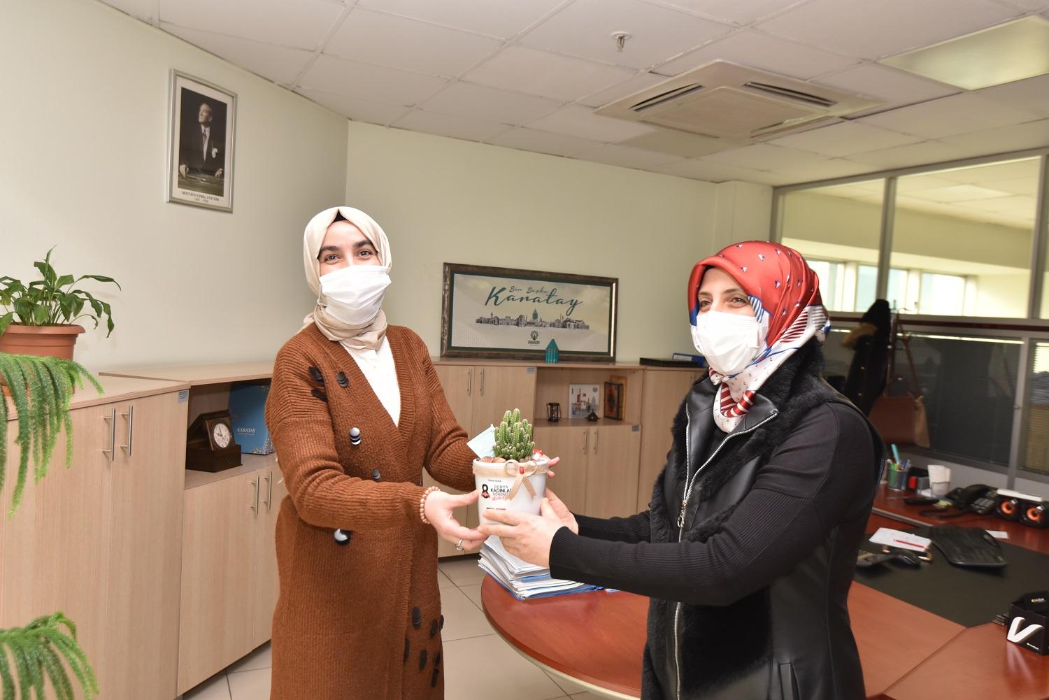 Kadın gazetecileri işyerlerinde ve evlerinde ziyaret eden, onların Kadınlar Günü’nü kutlayan Karatay Belediye Başkanı Hasan Kılca’nın eşi Şerife Kılca ve Karatay Kent Konseyi Kadın Meclisi Başkanı ile Üyeleri, Karatay Belediyesi’nin çeşitli birimlerinde görevli kadın yönetici ile personeli de unutmadı.