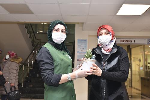 Karatay Belediye Başkanı Hasan Kılca’nın eşi Şerife Kılca ile Kent Konseyi Kadın Meclisi Başkanı Fazilet Koçyiğit ve üyeleri, söz konusu ziyaretlerde kadınlara Karatay Özel Eğitim Uygulama Okulu’nda eğitim gören özel öğrencilerinin serada ürettikleri çiçeklerden de hediye etti.