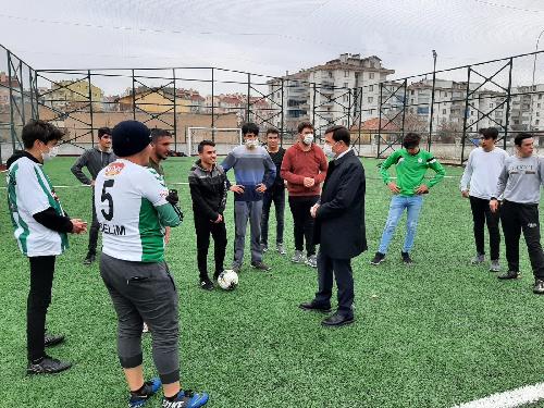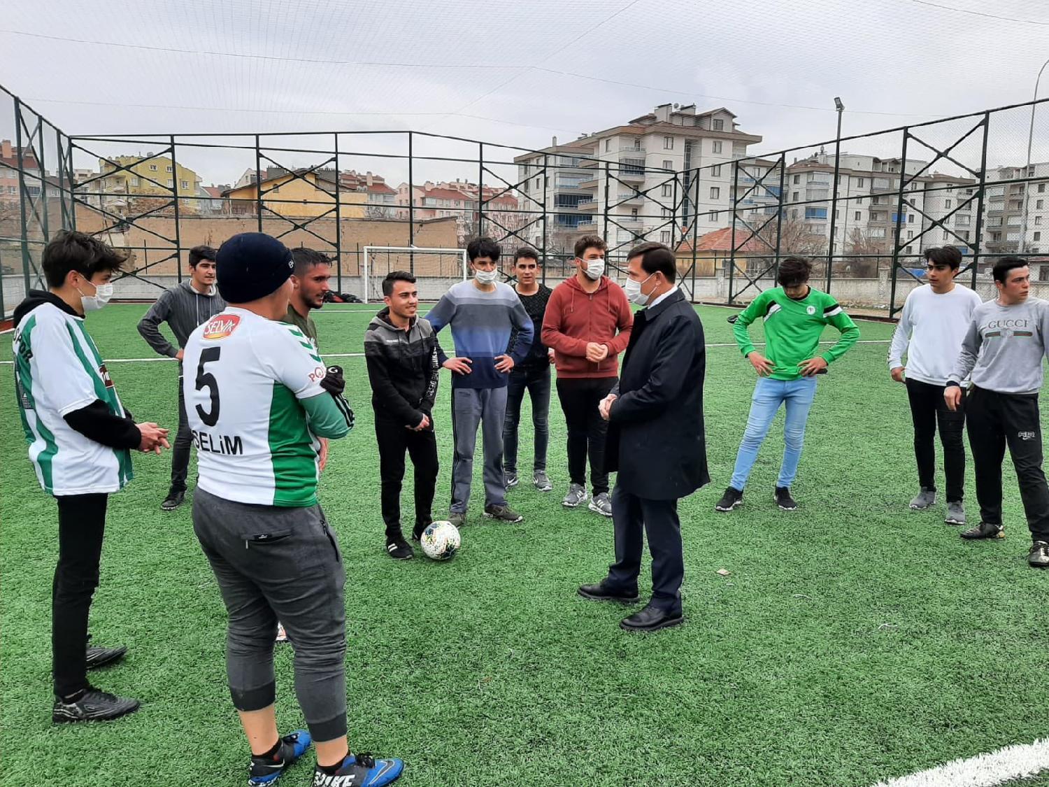 Karatay Belediye Başkan Yardımcıları, Birim Müdürleri ve AK Parti Karatay İlçe Başkanı Mehmet Genç’in de eşlik ettiği ziyaretler kapsamında ilk önce Hacı Hasan Mahallesi’ne giden Hasan Kılca, Karatay Belediyesi tarafından Çumralıoğlu Vakfı Anadolu İmam Hatip Lisesi’ne kazandırılan suni çim halı sahada futbol oynayan gençlerle buluştu.