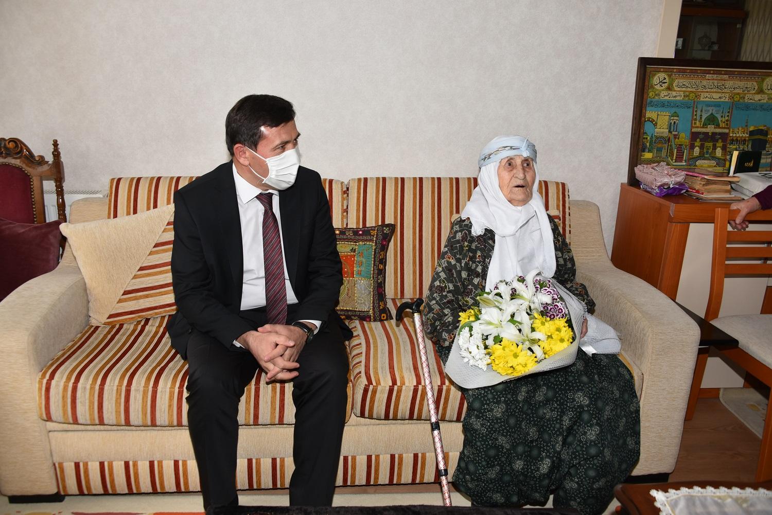 Karatay Belediye Başkanı Hasan Kılca, eşi Şerife Kılca ve Karatay Kent Konseyi Kadın Meclisi Başkanı Fazilet Koçyiğit ile birlikte 1921 yılında Afyon’da şehit düşen Bilal Yıldız’ın 102 yaşındaki kızı Ayşe Erarıcı’yı evinde ziyaret etti.