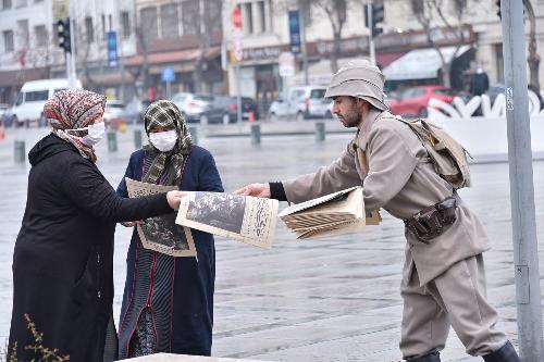 Karatay Belediyesi, 18 Mart Şehitleri Anma Günü ve Çanakkale Deniz Zaferi’nin 106. yıl dönümü dolayısıyla vatandaşlara Çanakkale Zaferi’nin 106. yıl dönümünde 18 Mart 1915 yılına ait “Konya Harp Mecmuası” adlı gazeteyi dağıttı.