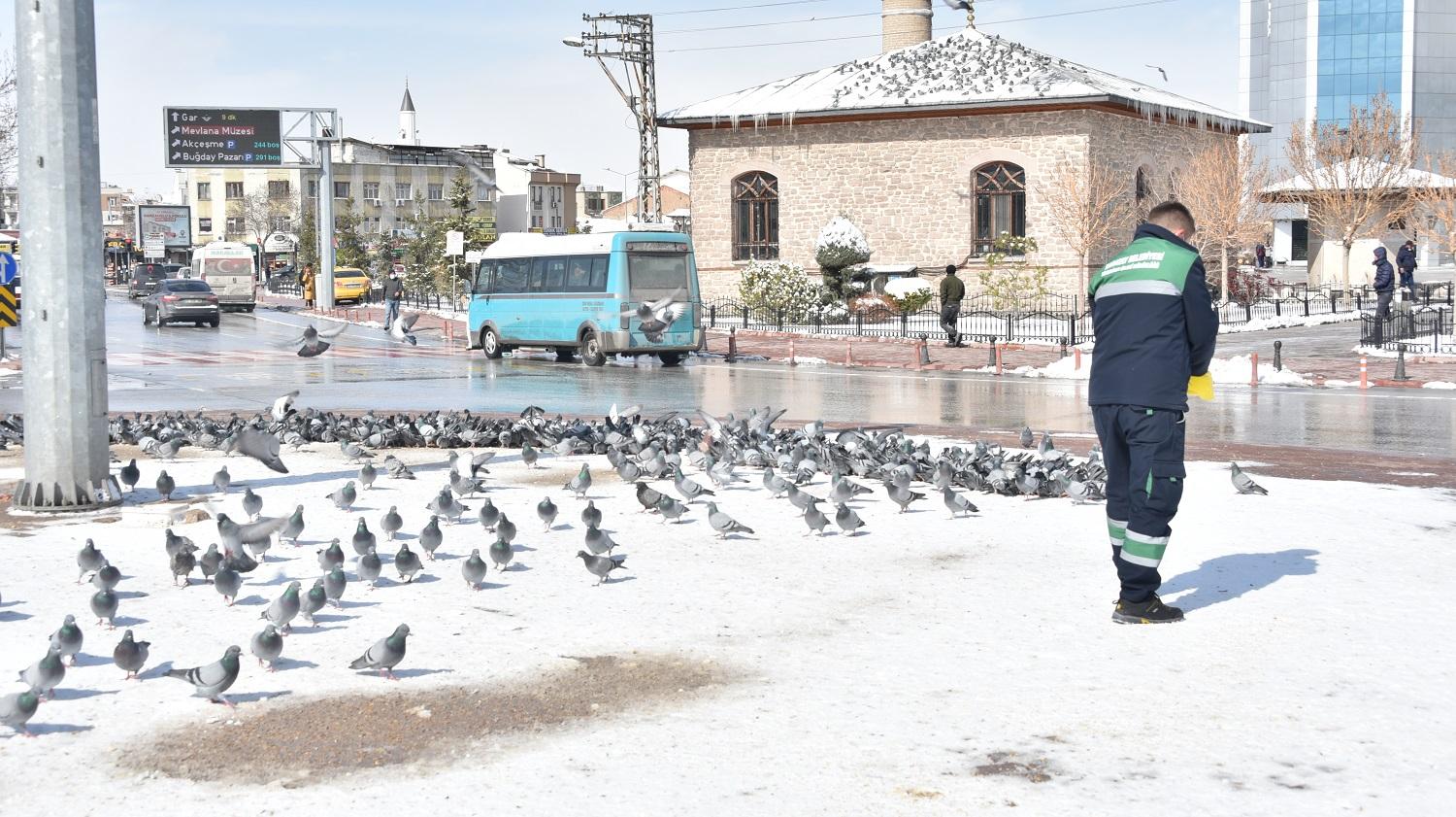 Soğuk havalarda sokak hayvanlarının yaşam mücadelelerine destek verildiği kaydedilen açıklamada ayrıca, “Hava sıcaklıklarının düşmesi ve kar yağışı en çok hayvanları etkiliyor. Yiyecek bulamayan hayvanlar donma tehlikesi ile karşı karşıya kalıyor. Karatay Belediyesi olarak sokak hayvanlarının bu duruma düşmemesi için yiyecek ihtiyaçlarını karşılıyoruz. Aynı zamanda kuşlar için de beslenme odaklarına ve açık alanlara buğday bırakıyoruz” denildi.