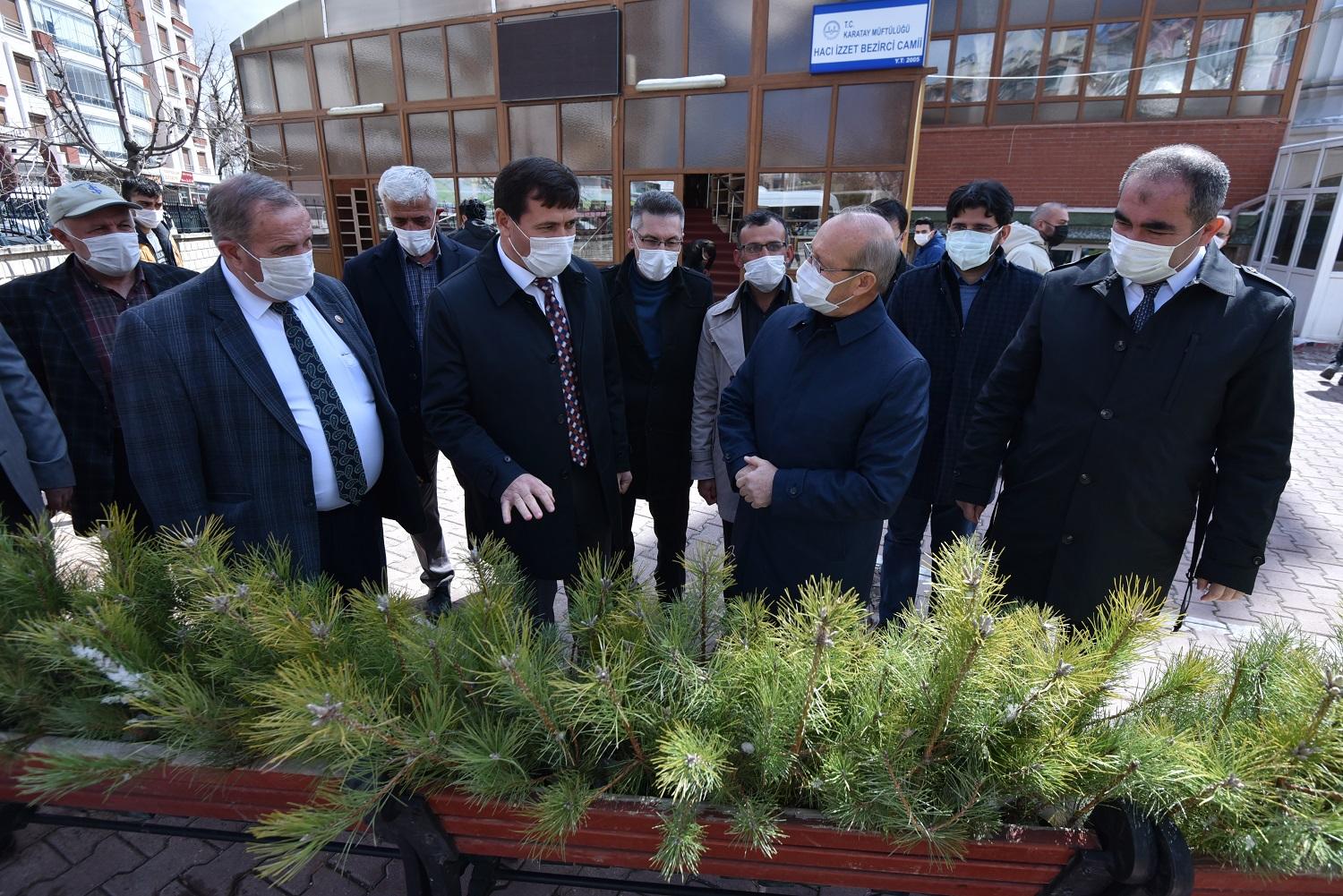 Karatay Belediye Başkanı Hasan Kılca, Cuma Buluşmaları kapsamında Ulubatlı Hasan Mahallesi’ndeki Hacı İzzet Bezirci Camii’nde namaz sonrası vatandaşlarla bir araya gelerek AK Parti Konya Milletvekili Ahmet Sorgun ve AK Parti Karatay İlçe Başkanı Mehmet Genç ile birlikte Orman Haftası dolayısıyla vatandaşlara fidan dağıttı. Fidan dikiminin özendirilmesine önem verdiklerini ifade eden Başkan Kılca; “Yeşili korumak bizim hedefimiz değil, asli görevimizdir. Amacımız hemşehrilerimize fidan sevgisini aşılamaktır” dedi.