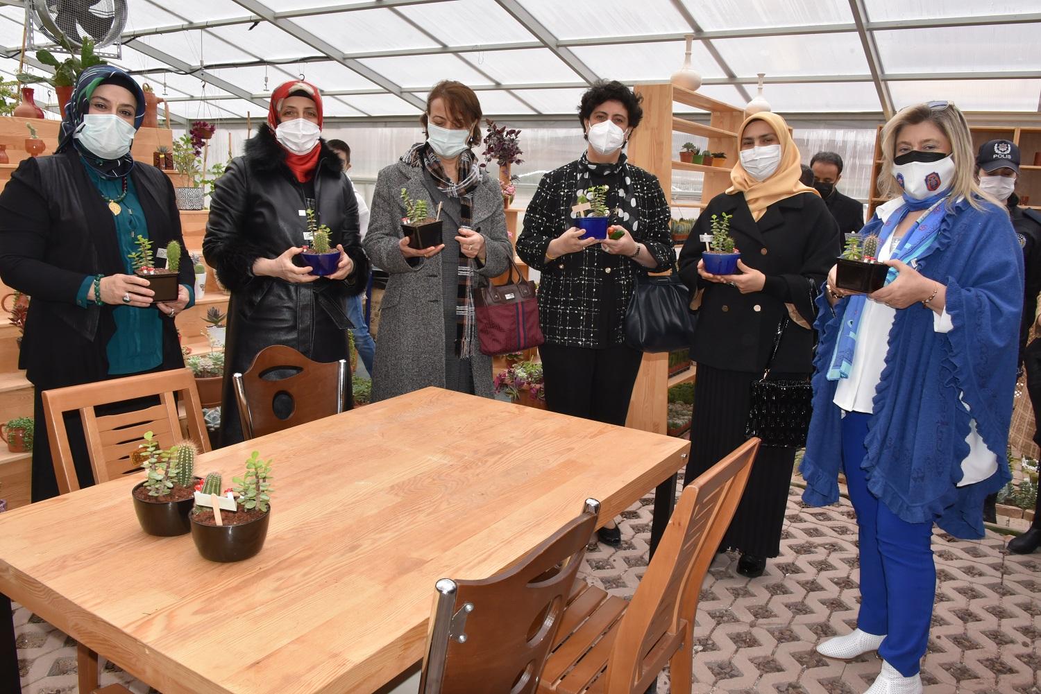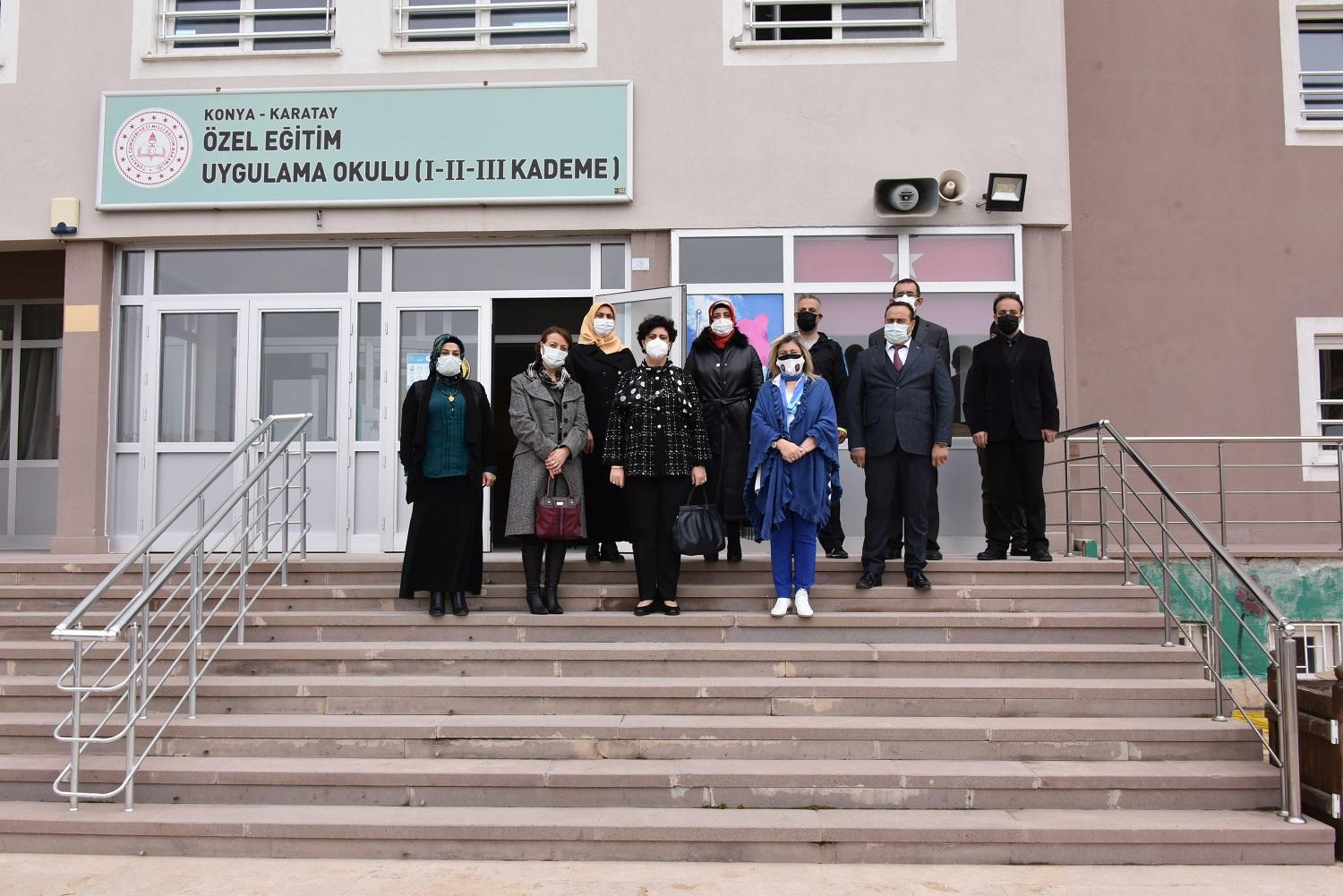 Protokol eşleri son olarak Karatay Belediyesi tarafından Karatay Özel Eğitim Uygulama Okulu’na kazandırılan ve örnek çalışmalara imza atılan okul serasını inceledi.