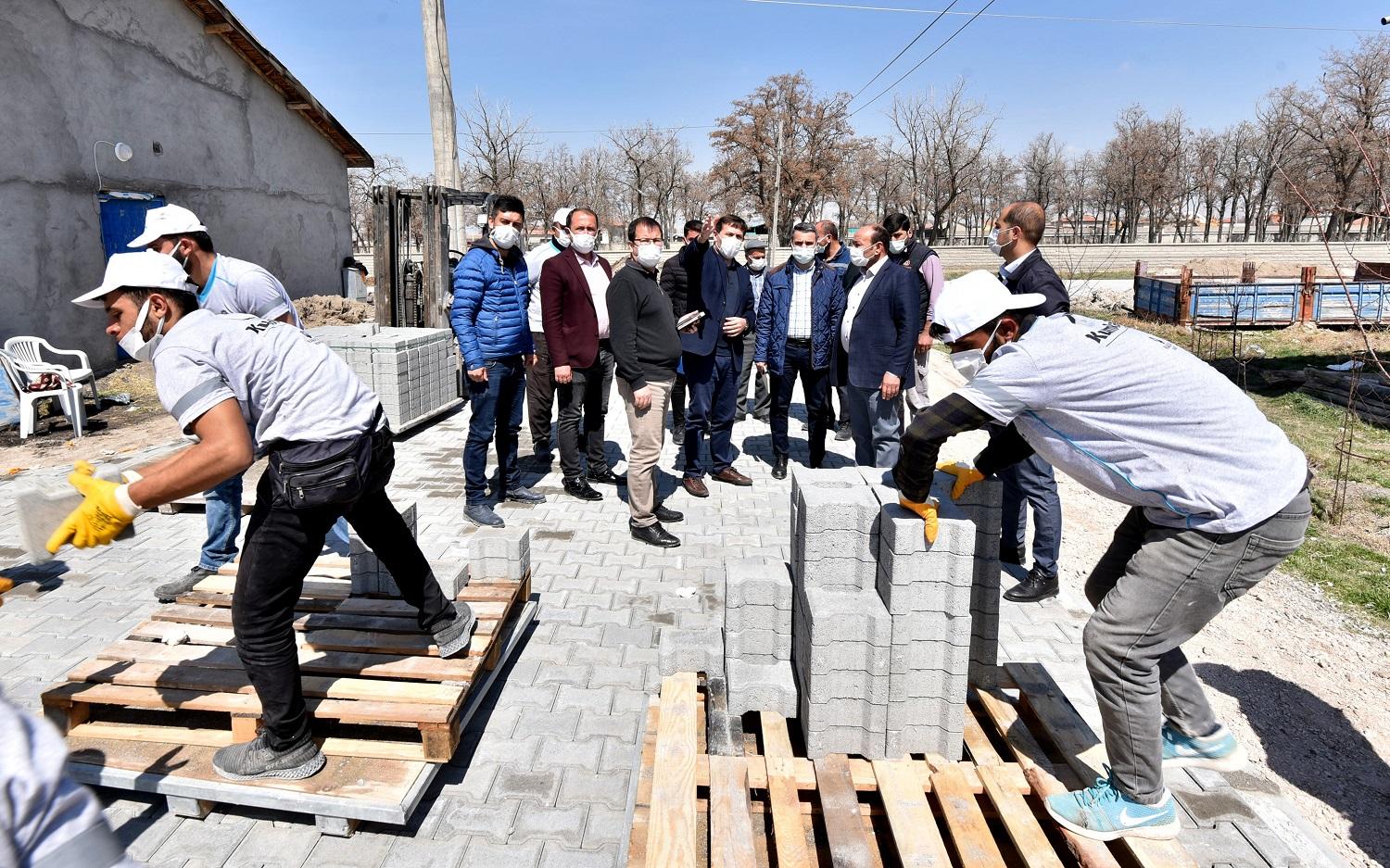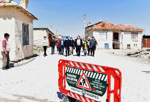 Karatay Belediye Başkanı Hasan Kılca, Fen İşleri Müdürlüğü ekiplerinin ilçeye bağlı merkeze uzak 14 mahallesinde sürdürdüğü kilit parke taş, bordür ve tretuvar çalışmalarını yerinde inceledi.