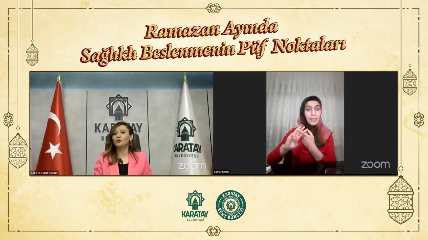 Karatay Belediyesi Karatay Kent Konseyi’nin dijital platformlar üzerinden düzenlediği ve sosyal hayata katkı sunan programları devam ediyor. Diyetisyen Cansu Dölek, “Ramazan Ayında Sağlıklı Beslenmenin Püf Noktaları” programında sağlıklı bir Ramazan geçirmek için özellikle pandemi sürecinde beslenmeye çok dikkat edilmesi gerektiğine vurgu yaptı.