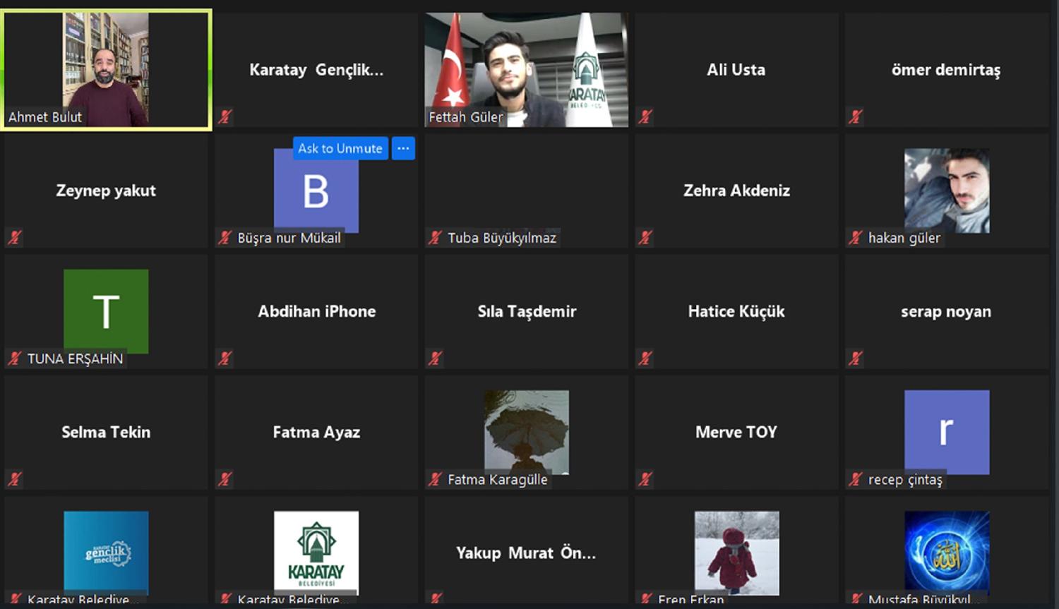 Büyük ilginin olduğu ve Karatay Kent Konseyi Gençlik Meclisi’nin sosyal medya hesaplarından canlı olarak yayınlanan programda Ahmet Bulut, namazın dinimiz için önemi, namazın sevdirilmesi ile günümüze yansımalarını gençlere anlattı.