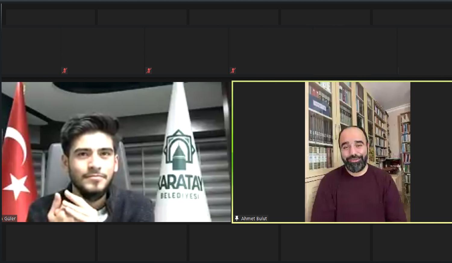 Karatay Belediyesi Kent Konseyi Gençlik Meclisi tarafından yürütülen proje kapsamında İlahiyatçı ve Yazar Ahmet Bulut, “Gözümüzün Nuru Namaz” programında Konyalı gençlerle buluştu. Dijital platformlar üzerinden canlı olarak gerçekleşen programda Ahmet Bulut, namazın dinimiz için önemi, namazın sevdirilmesi ile günümüze yansımalarını gençlere anlattı.