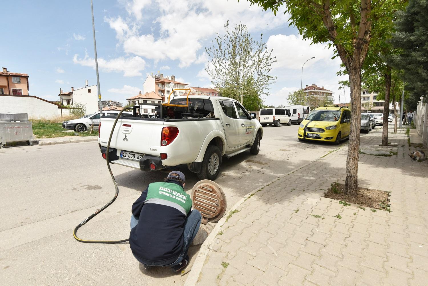 Karatay Belediyesi, havaların ısınmasıyla birlikte vatandaşların açık ile kapalı alanlarda daha rahat vakit geçirmesini sağlamak ve haşerelerin zararlı etkilerini en aza indirmek için uçkun ve larvaların bulunduğu alanlarda ilaçlama çalışmalarına başladı.