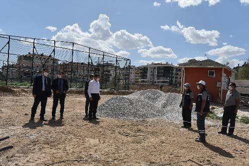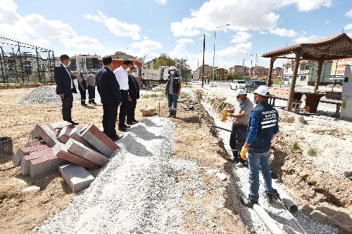 Karatay Belediye Başkanı Hasan Kılca, Doğuş Mahallesi Çimenlik Caddesi’nde yapım çalışmaları süren Doğuş Mahallesi Parkı’nda incelemelerde bulundu.