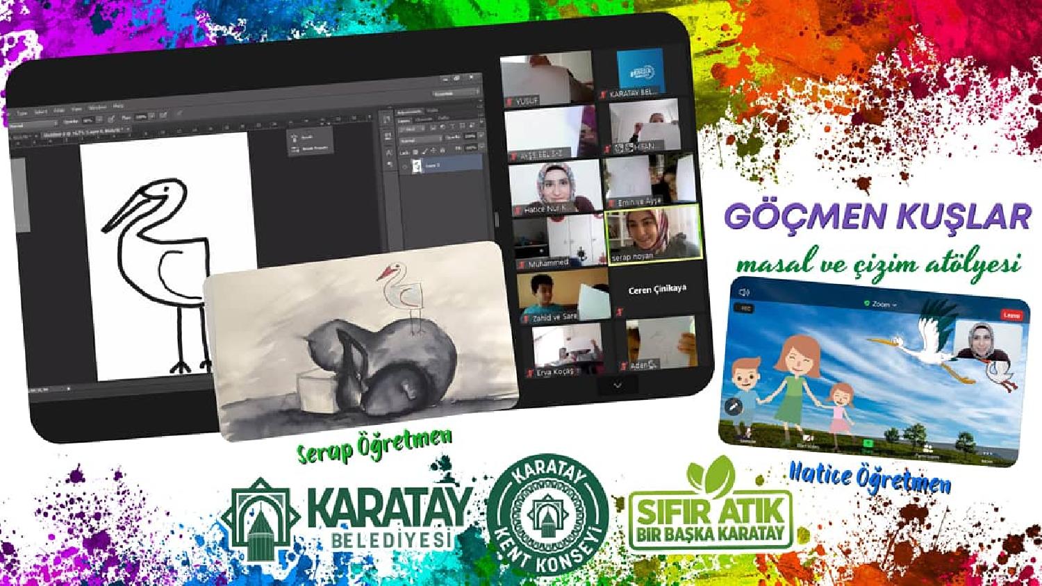 Karatay Belediyesi Kent Konseyi’nin dijital ortamda gerçekleştirdiği bir diğer etkinlik ise çocuklara yönelik oldu. 06 – 10 yaş arası çocukların katıldığı ve “9 Mayıs Göçmen Kuşlar Günü”nde yapılan etkinlikte Karatay Kent Konseyi Yönetim Kurulu Üyeleri, etkinlikte çocuklarla masal dinletisi yaptı ve çizim atölyesi ile çocukların göçmen kuşları resmetmeleri istendi.