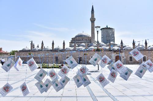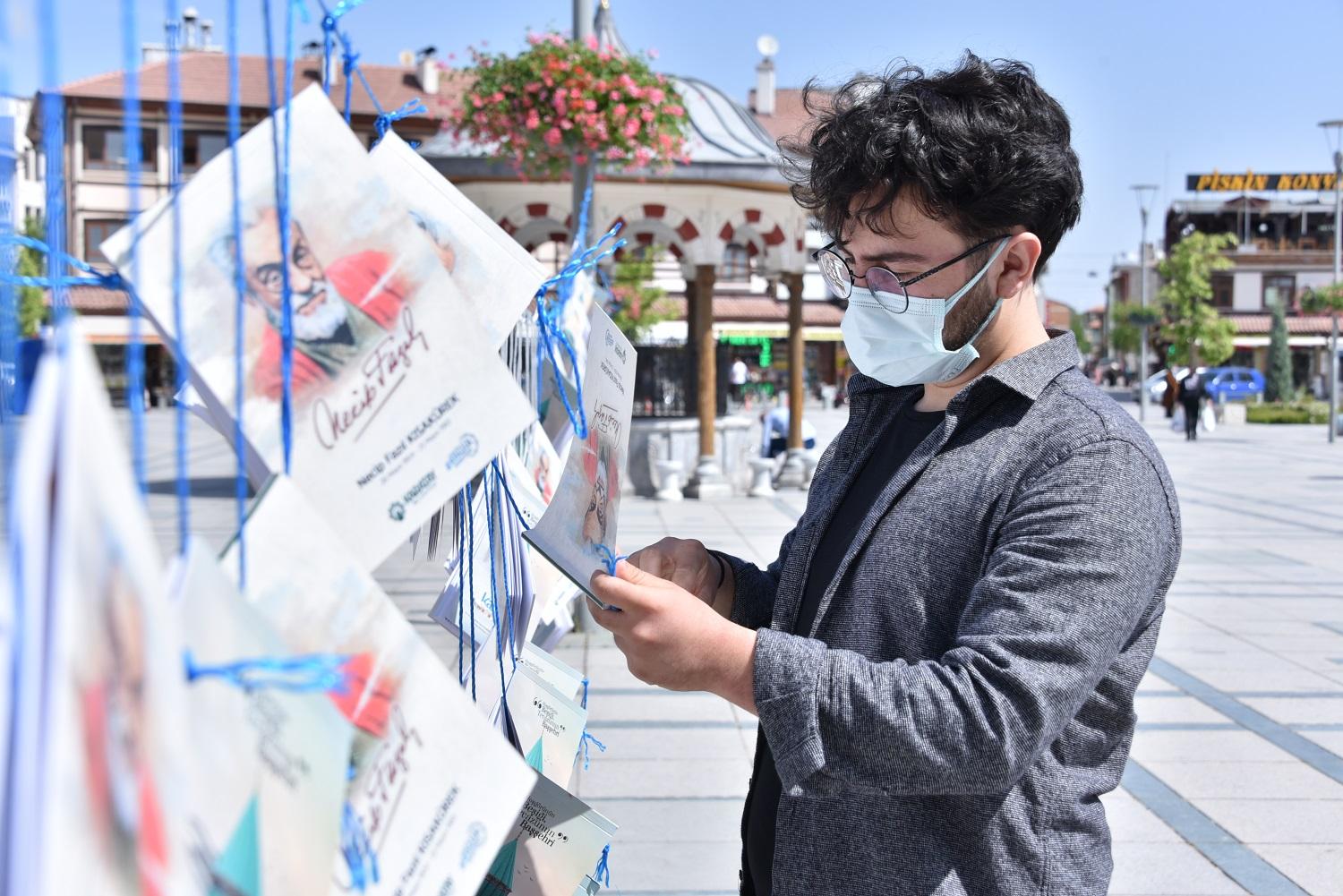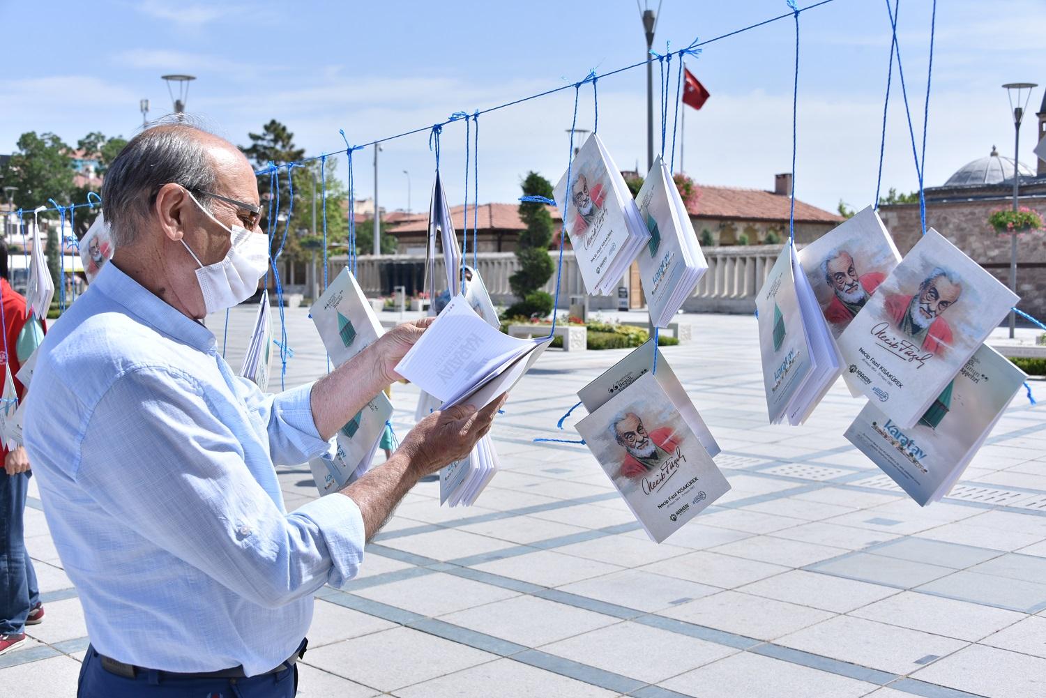 İçerisinde üstat Necip Fazıl’ın şiirlerinden ve veciz sözlerinin yer aldığı binlerce “Dava Adamı Bloknotu”, Mevlana Meydanı başta olmak üzere şehrin işler caddelerine asıldı.