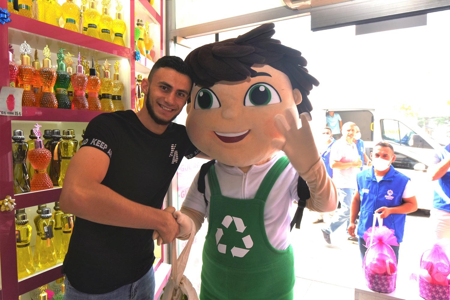 Bu kapsamda “Karacan” ilk kez sahaya inerek Karataylı vatandaşlara bez çanta ve içerisinde sıfır atık konusunda bilgilendirici broşür, tohum kalem ve açacakla birlikte mavi toplama poşeti dağıttı.