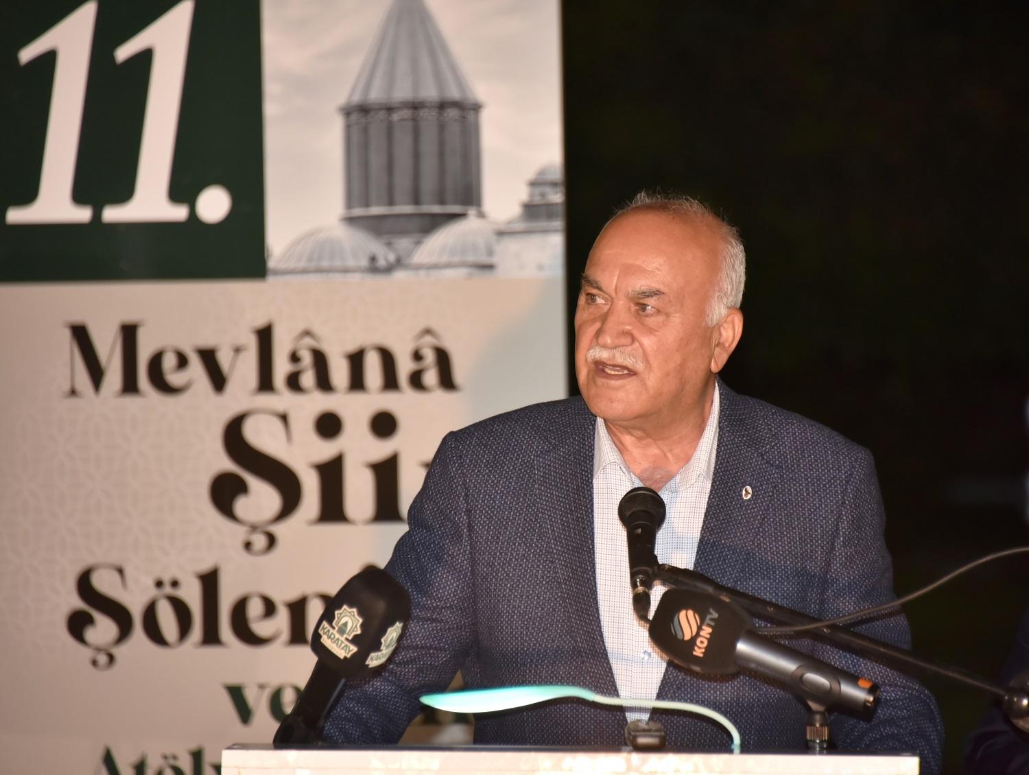 Şiir Şölenlerinin sürekli hale gelmesinden duyduğu memnuniyeti dile getiren Türkiye Yazarlar Birliği Onursal Başkanı D. Mehmet Doğan; “Dünyanın gelmiş geçmiş en büyük şairlerinden olan Hz. Mevlana’nın huzurunda güzel bir program icra ediyoruz. Yüzyıllarca büyük şairlerimiz ilhamlarını Mevlânâ’dan, Yunus Emre’den aldılar. Konya her zaman sanatın ve sanatçının yanında olan kadim bir şehir olarak biz sanatseverlerin gönlünde taht kurmuştur. Bu vesileyle programın düzenlenmesinde emeği geçen Karatay Belediye Başkanımıza ve tüm paydaşlara teşekkürlerimi sunuyorum” şeklinde konuştu.