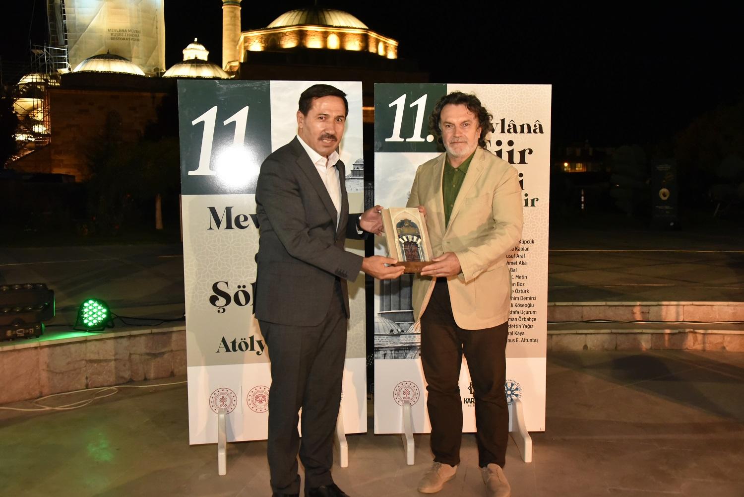 Şiir dünyasına keyifli bir yolculuğun yaşandığı Mevlânâ Şiir Şöleni’nin sonunda protokol üyeleri geceye şiirleriyle renk katan isimlere hediye vererek teşekkür ettiler. Öte yandan şairlerin okudukları şiirlerden oluşan kitap, kültür sanat insanlarına ve programa katılanlara günün anısı olarak hediye edildi.