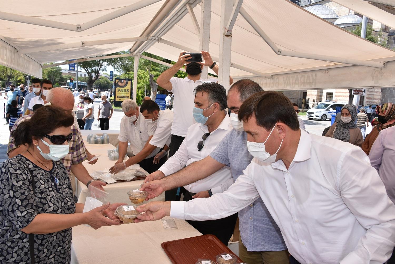 Şerafettin Camii önünde gerçekleştirilen aşure dağıtım programına Karatay Kaymakamı Abdullah Selim Parlar, AK Parti Karatay İlçe Başkanı Mehmet Genç ve ilçe yönetim kurulu üyeleri katıldı.