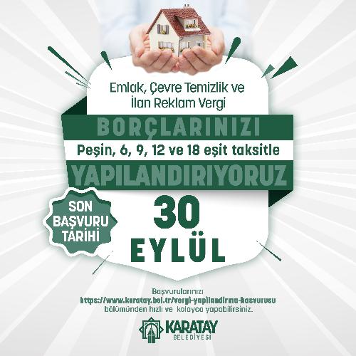 Söz konusu karar ile ilgili Karatay Belediyesi’nden yapılan açıklamada şunlar kaydedildi: “Resmi Gazete’de yer alan kararda 31 Ağustos'ta sona erecek olan başvuru, bildirim ve beyan süreleri ile bu başvuru, bildirim ve beyana ilişkin ilk taksit ödeme süreleri birer ay uzatıldı. Karar, ‘7326 sayılı Bazı Alacakların Yeniden Yapılandırılması ile Bazı Kanunlarda Değişiklik Yapılmasına İlişkin Kanun’ kapsamında yer alan; bazı vergi ve vergi cezaları, gecikme faizi ve gecikme zamları, idari para cezaları, sigorta primi, emeklilik keseneği, işsizlik sigortası primi, sosyal güvenlik destek primi ile bunlara bağlı gecikme cezası ve gecikme zammı alacakları, belediyelerin bazı alacaklarının yeniden yapılandırılmasını kapsıyor. Buna göre 31 Ağustos 2021 tarihinde bitecek olan başvuru ve ödemeye ilişkin karar, 1 ay süreyle uzatıldı. Dolayısıyla yapılandırma başvurusu için son gün 30 Eylül 2021 olarak belirlenirken; borçların yapılandırılması sonrasında ilk taksit ödeme süresi de 1 Kasım 2021’den 1 Aralık 2021’e uzatılmış oldu.”