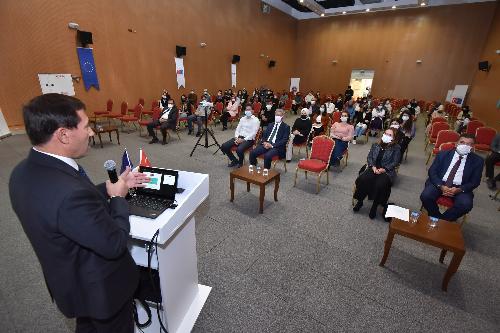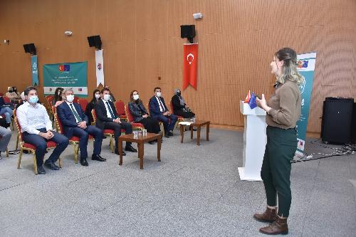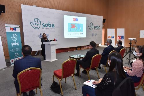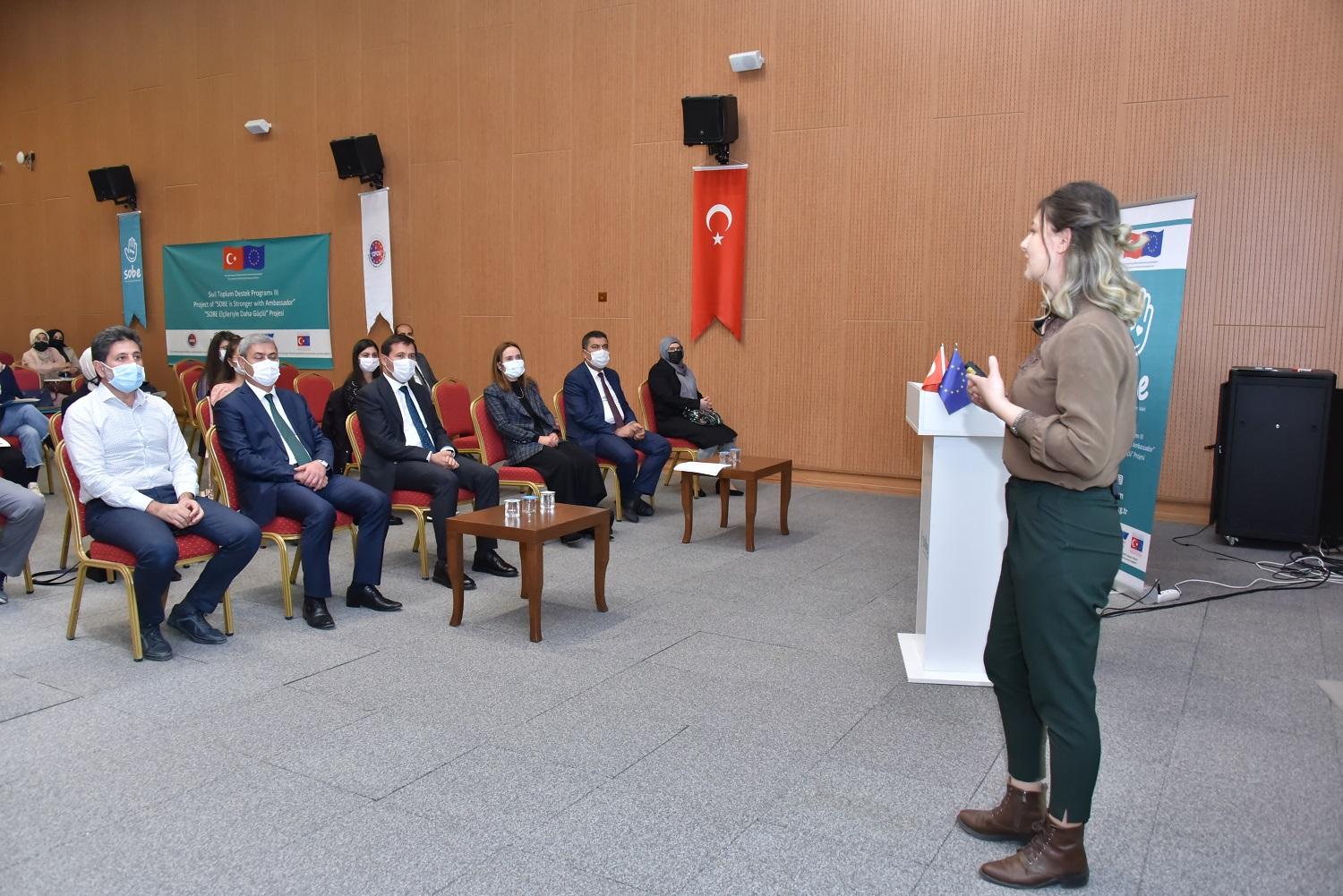 Protokol konuşmalarının ardından Sürekli Eğitim Birimi Koordinatörü Zeynep Takı Kapıdaş, “Sobe Elçileriyle Daha Güçlü Projesi” kapsamında eğitimcilere yönelik sunumunu gerçekleştirdi.