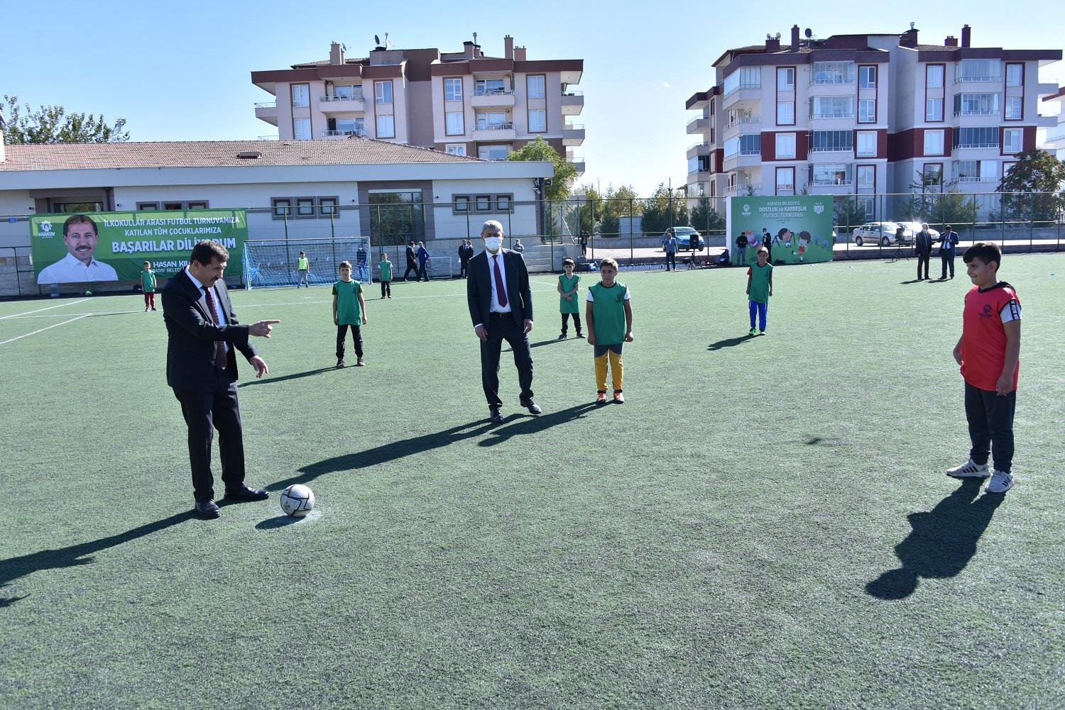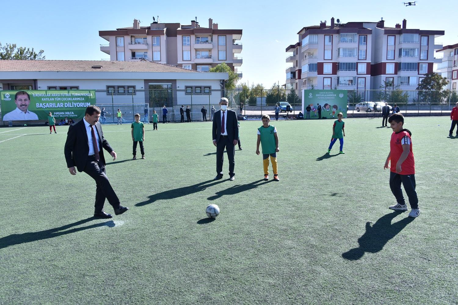 Konuşmaların ardından “İlkokullar Arası Dostluk ve Kardeşlik Turnuvası”, Karatay Belediye Başkanı Hasan Kılca’nın santrası ile başladı.