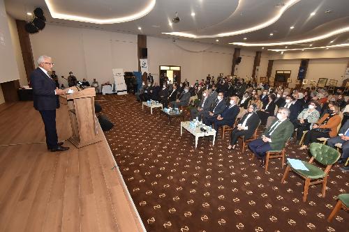 Necmettin Erbakan Üniversitesi tarafından Mimar-Nakkaş Semih İrteş’e fahri doktora payesinin tevcih edildiği sempozyumun açılışında konuşan Necmettin Erbakan Üniversitesi Rektörü Prof. Dr. Cem Zorlu, “Üniversite olarak Konya’ya ve Türkiye’ye bilimsel anlamda her türlü katkıyı yapmaya çalışıyoruz” dedi.