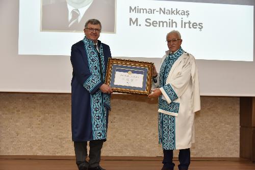 Konuşmaların ardından sempozyum kapsamında Necmettin Erbakan Üniversitesi tarafından Mimar-Nakkaş Semih İrteş’e fahri doktora unvanı verilmesi törenine geçildi.