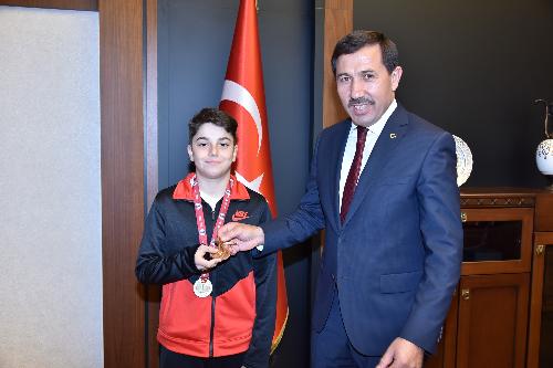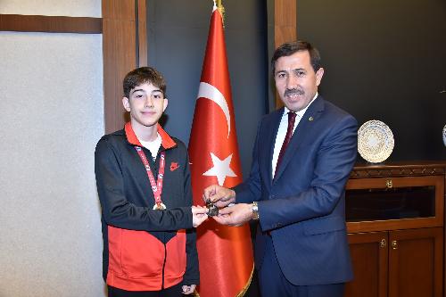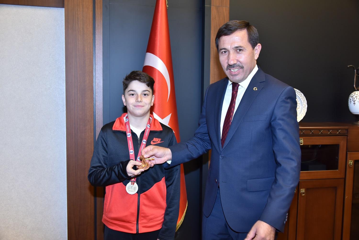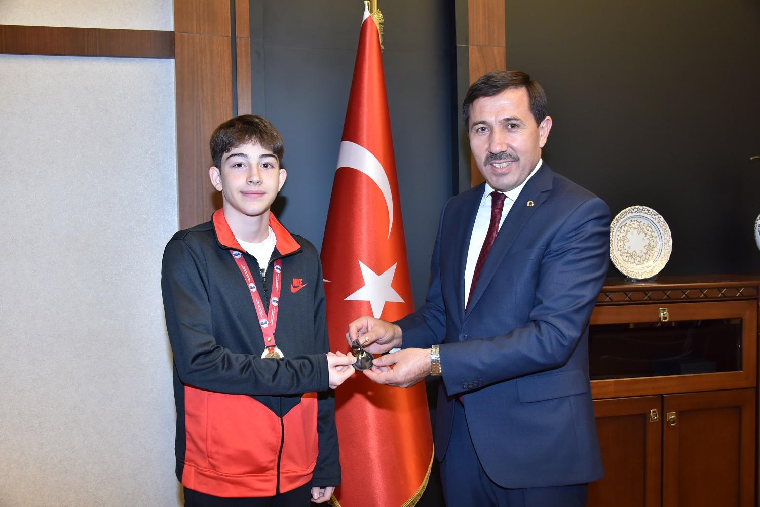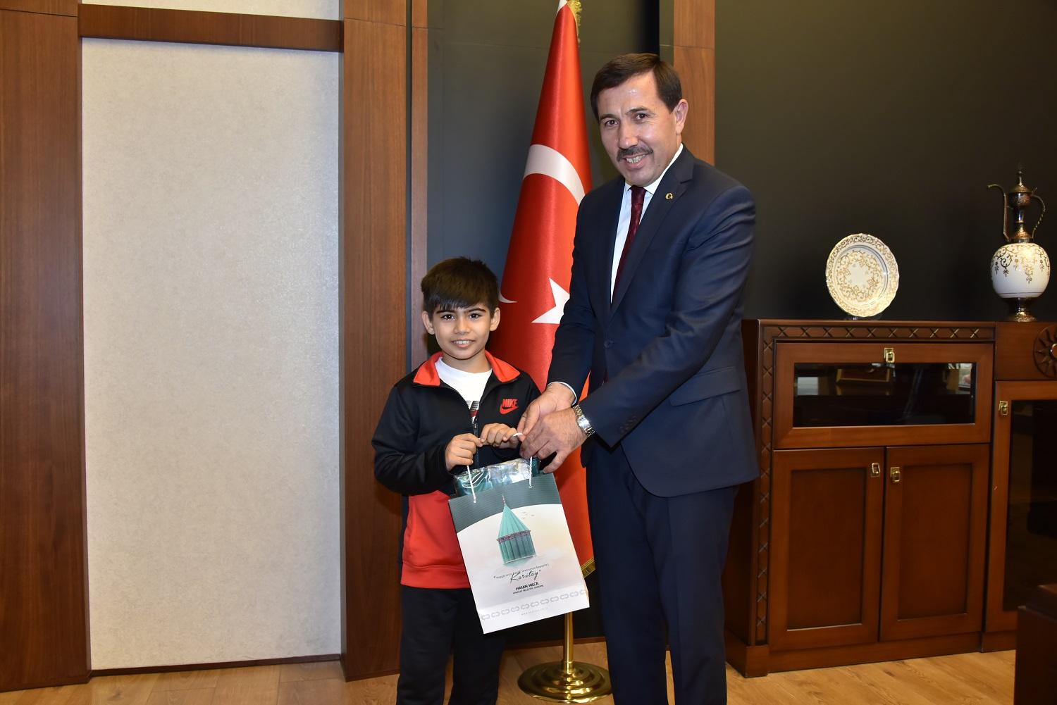 Karatay Belediyespor Kulübü şampiyonları, Karatay Belediye Başkanı Hasan Kılca’yı ziyaretlerinde desteklerinden dolayı Başkan Hasan Kılca’ya teşekkür ettiler.