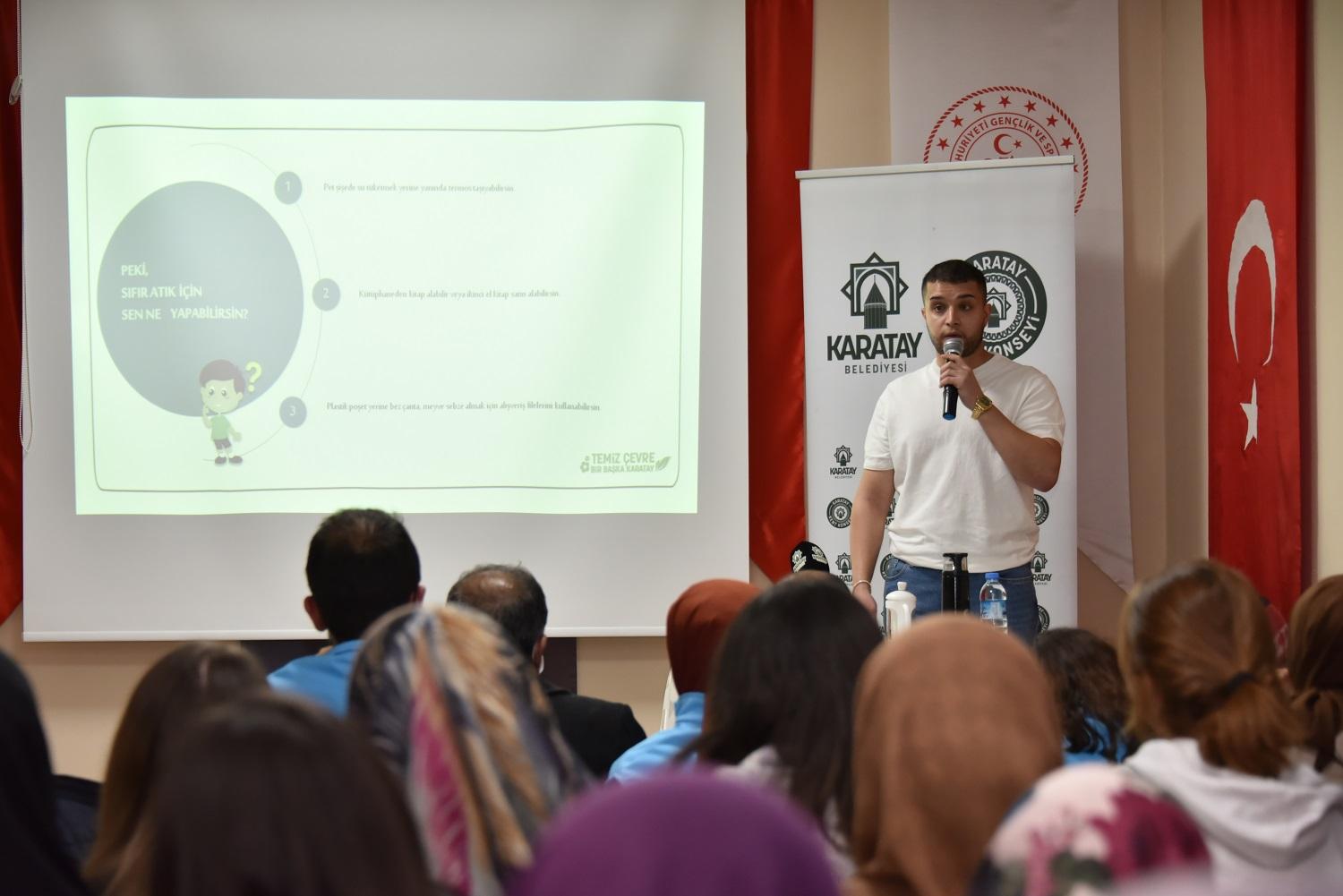 Sıfır Atık çalışmalarının daha geniş bir tabana yayılmasını sağlamak amacıyla eğitim çalışmalarını sürdüren Karatay Belediyesi Kent Konseyi tarafından yurtlarda kalan öğrencilere yönelik ‘Sıfır Atık Gönüllüleri Hareketi’ başlatıldı. Proje kapsamında öğrencilere sıfır atık uygulamaları hakkında bilgi verildi. Toplumda sıfır atık bilincinin oluşturulmasının büyük bir önem taşıdığını ifade eden Karatay Belediyesi Kent Konseyi Başkanı Abdurrahim Arslan öğrencileri sıfır atık gönüllülük hareketine davet etti.