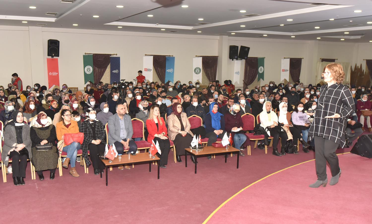 Evirgen, şunları dile getirdi; “Hem sağlığımız hem çocuklarımız hem de insan soyunun geleceği adına çocuklarımızın kalplerini büyütmek olmalıdır. Aile demek bağımlılık demek kendimizi güvende hissetmek demek. Öyle bir şey ki mutluluğumuzu da hüznümüzü de ailemizle paylaşıyoruz. Aslında aile hem bağlılığı hem de bağımsızlığı öğreten küçük kurumsal bir yapıdır. Ailenin çok önemli bir ögesi de dışarıdan yorgun gelen, mutsuz gelen bireyleri şarj etmektir. Bazen bu koşullar tersine döner ve maalesef aile içi şiddet, bütün aileyi parçalayabilir. İşte aile içi şiddetten kaçınmanın yolu da aile içi iletişimden geçer. İletişim sadece karşılıklı konuşmak değildir. Aslında aile bireyleri, hiç konuşmadan da yani beden diliyle de iletişim kurabilirler. Bir sıkıntısı olan aile bireyi, beden diliyle bu sıkıntısını diğerlerini kolaylıkla aktarır. Bu nedenle beden dili, konuşmaktan daha büyük bir olgudur. Anne ve babanın birbirlerine gösterdiği sevgi ile saygı, çocukları da olumlu etkiler. Buna çocuk esenliği denir. Anne ve babanın birbirine gösterdiği sevgi saygı sonucunda çocukların kalbi büyür. Bizler anne babalar olarak konuşmalarımızla jest ve mimiklerimizle çocuklarımıza örnek oluyoruz. Onlar, birçok şey gibi saygı ve sevgiyi de bizlerden öğreniyorlar. İlerleyen yaşlarında aileden gördüklerini başka ortamlara yansıtıyorlar. Bu bağlamda ebeveynler, çocukları için değişmez ilk öğretmenlerdir.”