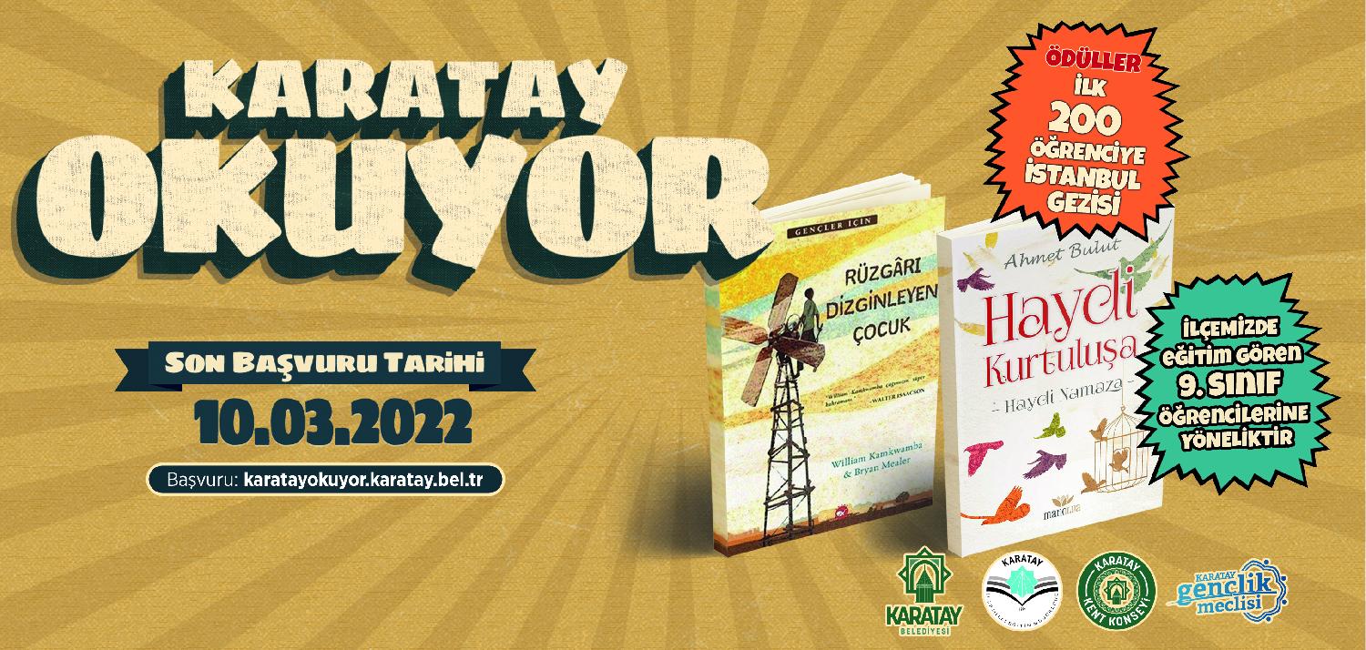 Hasan Kılca şunları aktardı: “Kitap okuma alışkanlığını küçük yaşlarda çocuklarımıza kazandırmak istiyoruz. Çünkü biliyoruz ki okudukça değerlerimiz artar, okudukça birbirimizi daha iyi anlarız ve söyleyecek sözümüz olur. Bu amaçla ilçemizdeki bütün 9. sınıf öğrencilerimize yönelik ‘Karatay Okuyor’ etkinliğini başlatıyoruz. Projeye katılan gençlerimize ‘Rüzgârı Dizginleyen Çocuk’ ve ‘Haydi Kurtuluşa’ gibi iki kıymetli kitap hediye edeceğiz. Sonrasında ise yapılacak sınavda başarılı olan 200 gencimizi İstanbul gezisiyle ödüllendireceğiz. Yani bu projeyle hem çocuklarımızın kitap okuma alışkanlığına katkıda bulunmuş olacağız. Belediye olarak ülkemizin yarını olan öğrencilerimizin başarılı ve çok daha donanımlı bireyler olarak yetişmesi için yanlarında olmaya devam edeceğiz. 9. sınıf bütün öğrenci kardeşlerimizi etkinliğimize katılmaya davet ediyorum.”