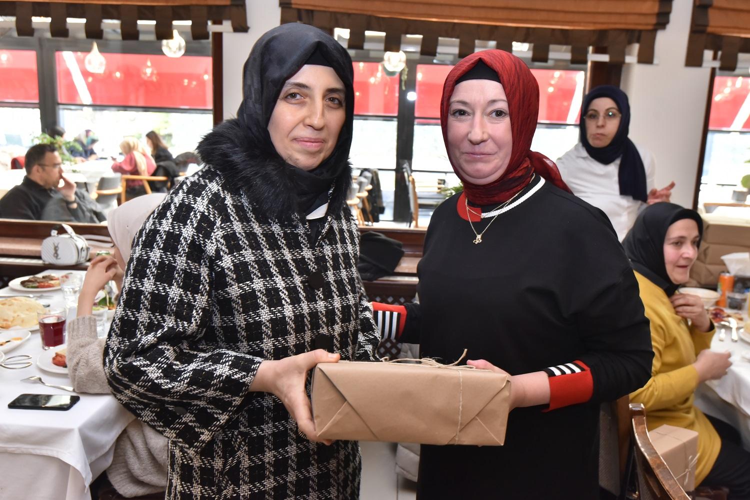 Şerife Kılca ve Karatay Kadın Konseyi Başkanı Fazilet Koçyiğit programa katılanlara günün anısına hediyeler takdim ettiler.