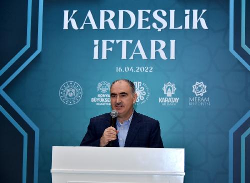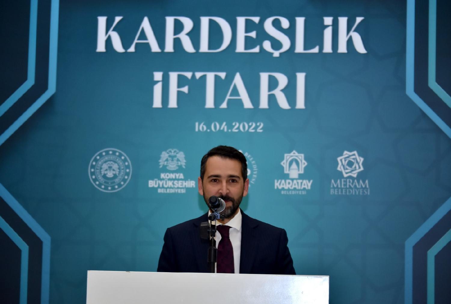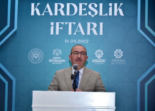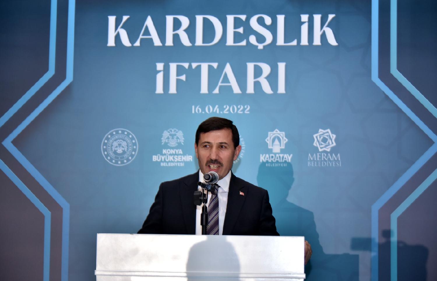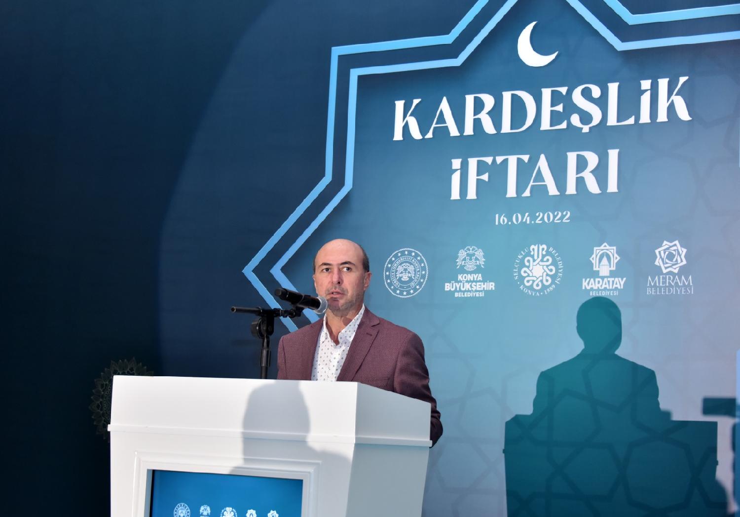 Selçuklu Belediye Başkanı Ahmet Pekyatırmacı, programın hayata geçirilmesinde emeği geçen herkese teşekkür ederek konuşmasına başladı. Ahmet Pekyatırmacı şunları aktardı: “Bugün gerçekten de bizim için özel bir iftar programındayız. Çocuklarımızla gençlerimizle bu akşam bir arada olmak büyük bir mutluluk. Hem devletimizin tüm kurum ve kuruluşlarıyla h em de yerel yönetimler olarak bizler zaman sizin yanınızdayız. Ramazan ayı ile birlikte yardımlaşma, birlik ve dayanışma öne çıkıyor. Konya olarak bizler de bunu çok iyi uyguluyor ve bereketini hep birlikte görüyoruz elhamdülillah.”
