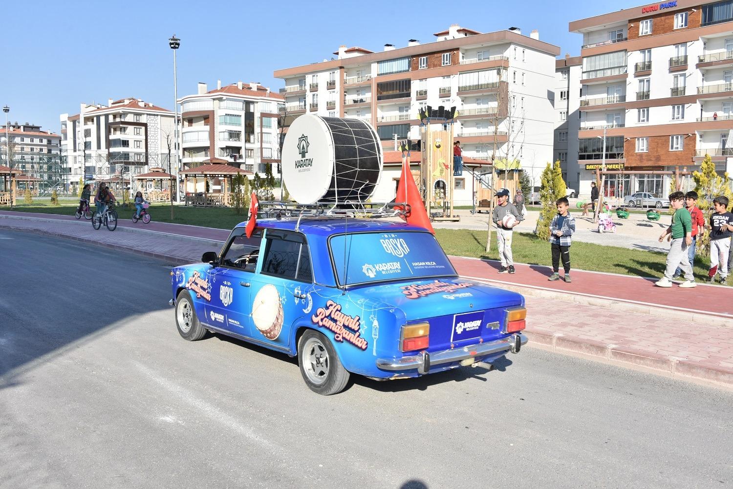Karatay Belediyesi, davulunu çalarak vatandaşlara sahur vaktini haber veren Ramazan Davulcuları yerine klasik araçlara ses sistemi ve üzerlerine de davul yerleştirerek iki aracı Ramazan Davulcusu yaptı.