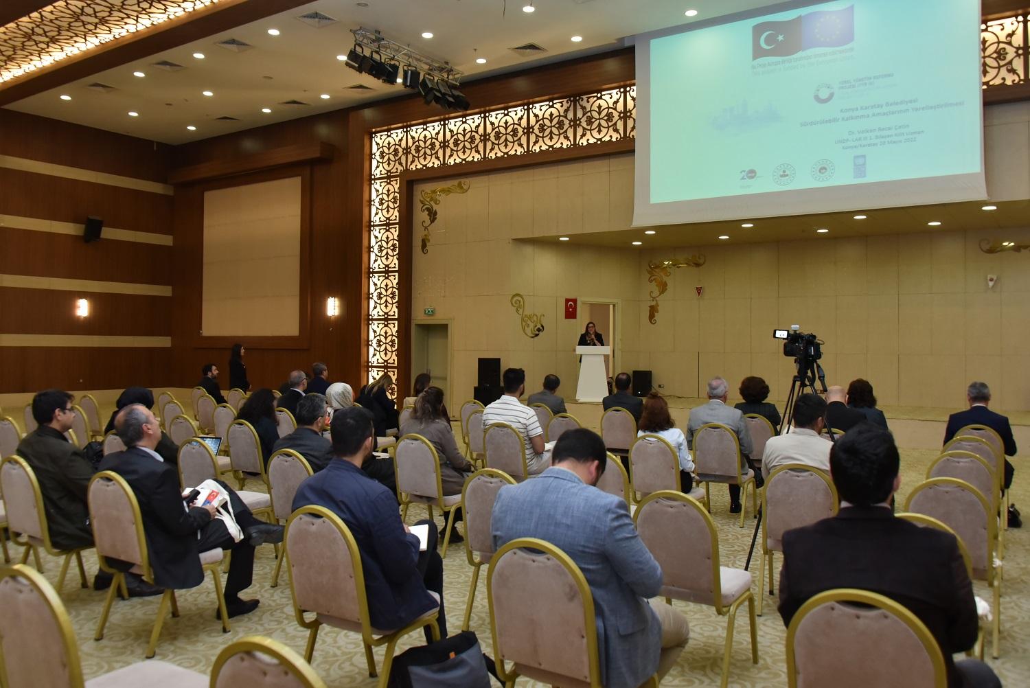 “Belediyelerde Performans Yönetim Sisteminin Geliştirilmesi” ana başlığı adı altında Karatay Gençlik Merkezi’nde düzenlenen programa; Çevre, Şehircilik ve İklim Değişikliği Bakanlığı Daire Başkanı Halil Şener, Çevre, Şehircilik ve İklim Değişikliği Bakanlığı Milli Emlak Uzmanı Kıvılcım Özge Kara, Birleşmiş Milletler Kalkınma Programı (UNDP) yönetici ile uzmanları, Karatay Belediye Başkan Yardımcısı Ramazan Şevik, Karatay Belediyesi birim yönetici ile personeli, Konya’nın birçok kamu kurum, kuruluş ve STK temsilcileri, üniversite ile uluslararası kuruluşlardan temsilciler katıldı.