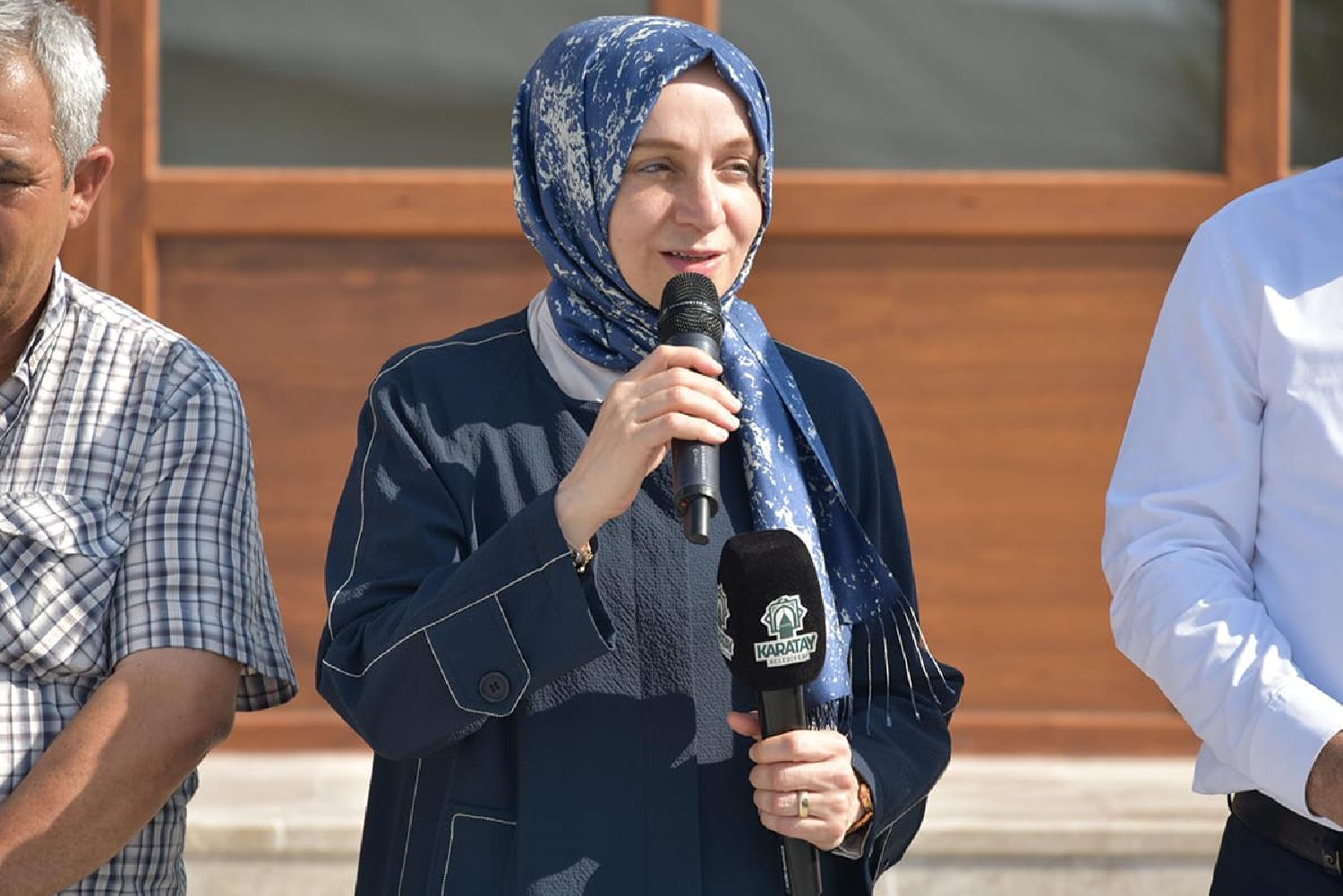 Leyla Şahin Usta; ‘Hayata geçirilen birçok yatırıma şehitlerimizin adını vererek kendilerini unutmuyoruz. Bu güzel ve anlamlı tesisi mahallemize kazandıran Karatay Belediye Başkanımıza ve ekibine teşekkür ediyorum. Tesiste bir yandan çocuklarımız Kur’an-ı Kerim eğitimi görürken hanım kardeşlerimiz de burada yapılacak birçok kurs ile etkinliğe katılacaklar. Hayırlı mübarek olsun, tüm şehitlerimize de Allah’tan rahmet diliyorum. Bizler, 20 yıllık iktidarımızda yaptığımız her işimizde insanımıza öncelik verdik böyle yapmaya da devam edeceğiz. Her zaman eser siyaseti yaptık. Karatay’ın her tarafında bu ve daha böyle birçok eser var. Gittiğimiz her tarafta da halkımızın Karatay Belediye Başkanımıza teşekkür ettiğine şahitlik ettik. Ben de bu vesileyle ilçenin dört bir yanına hizmet eden başkanımıza teşekkür ediyorum. Türkiye’ni 2023, 2053 ve 2071 vizyonlarına durmak yok yola devam diyerek hizmet edeceğimize söz veriyoruz’ dedi.