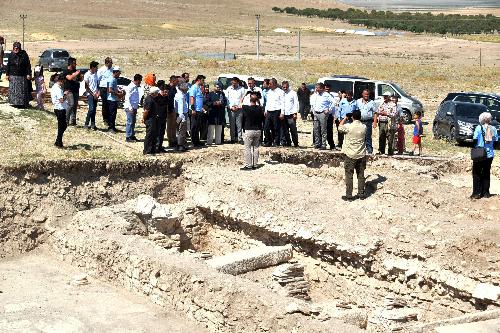 Leyla Şahin Usta, Prof. Dr. Metin Aksoy, Engin Dinç, Hasan Kılca ve Mehmet Genç; uzun süredir devam eden bölgedeki kazılar ve çalışmalarda ortaya çıkarılan buluntular hakkında Selçuk Üniversitesi Kültür Varlıklarını Koruma ve Onarımı Bölümü Öğretim Üyesi Doçent Doktor İlker Işık’tan bilgi aldı.